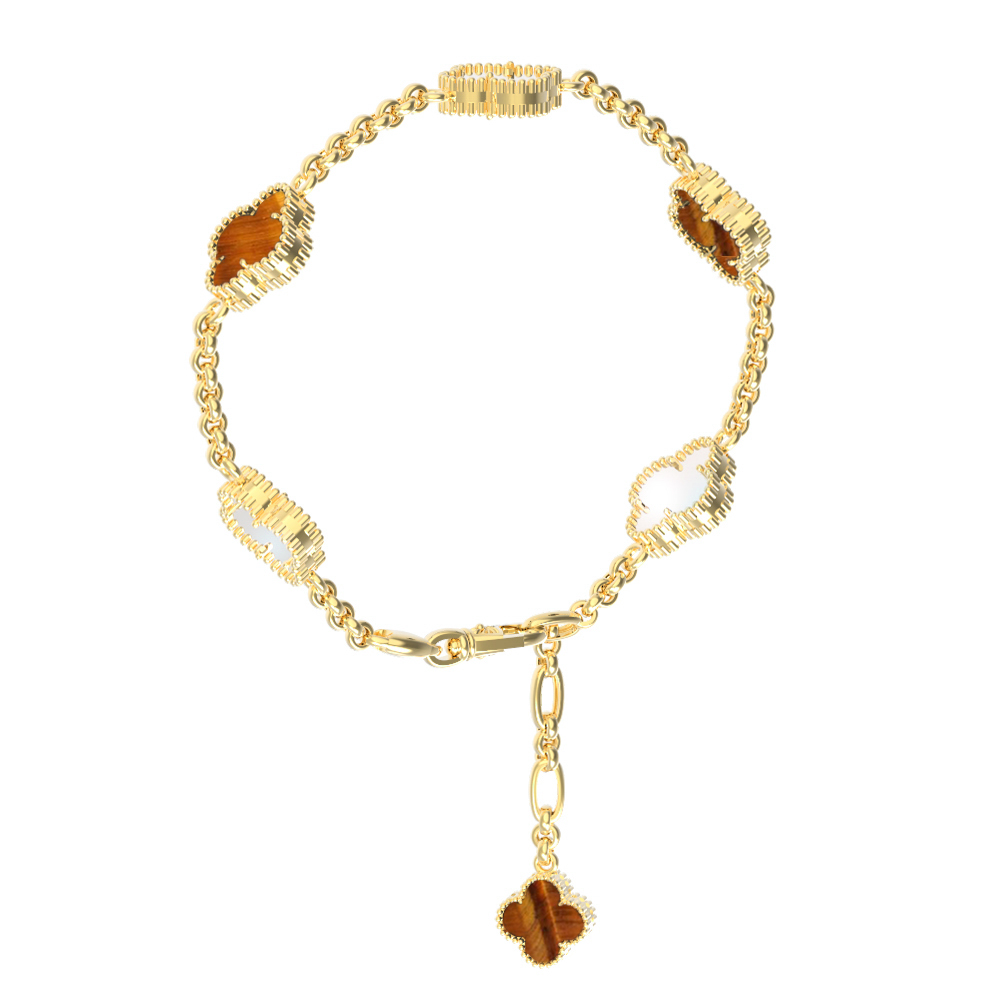 Браслет из лимонного золота c тигровым глазом и перламутром