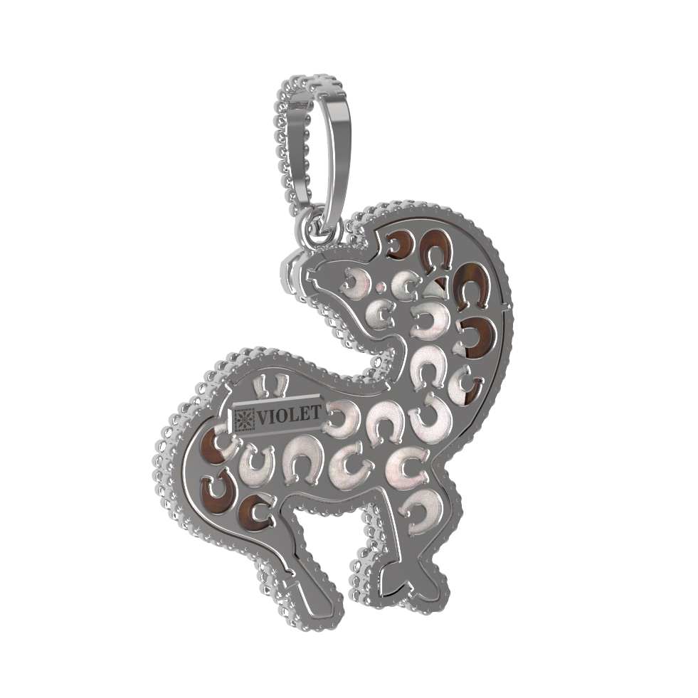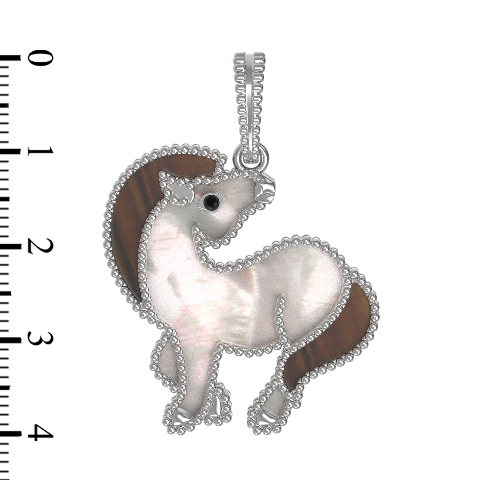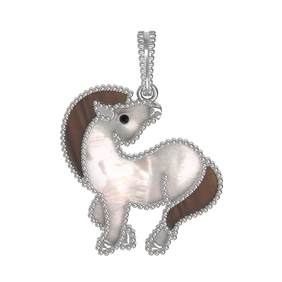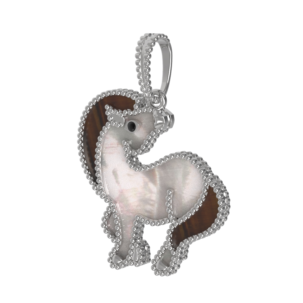 Подвеска из белого золота c эмаль, тигровым глазом и перламутром