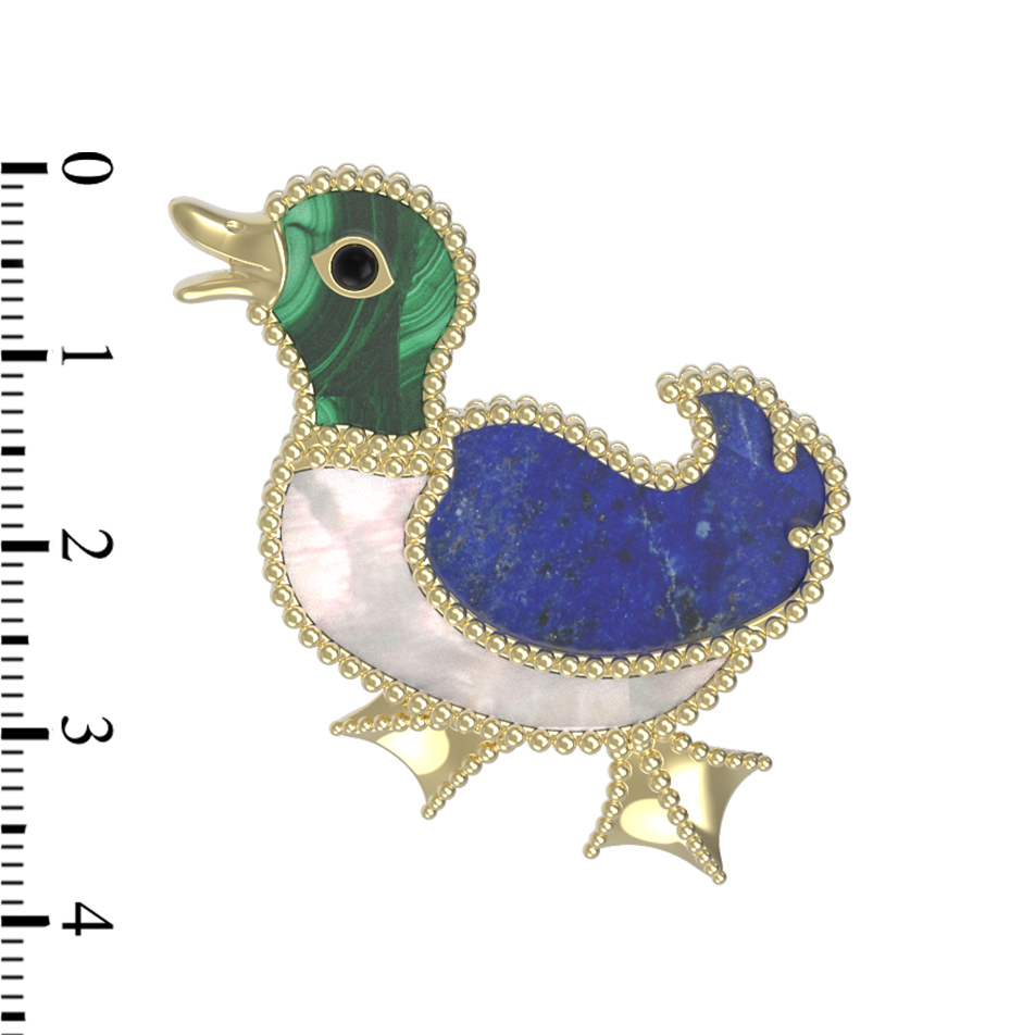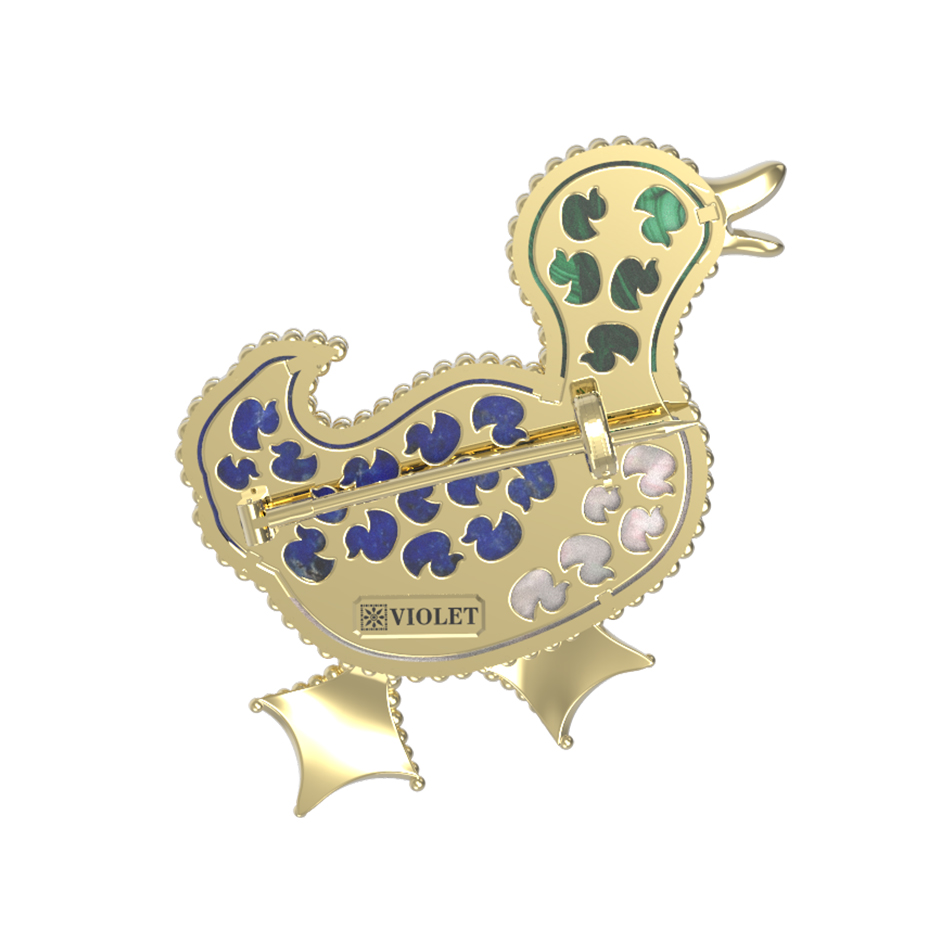 Брошь из лимонного золота c эмаль, лазуритом, малахитом и перламутром