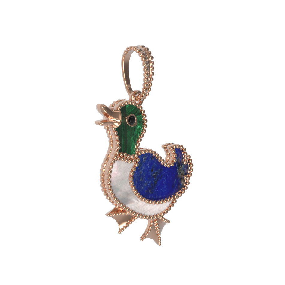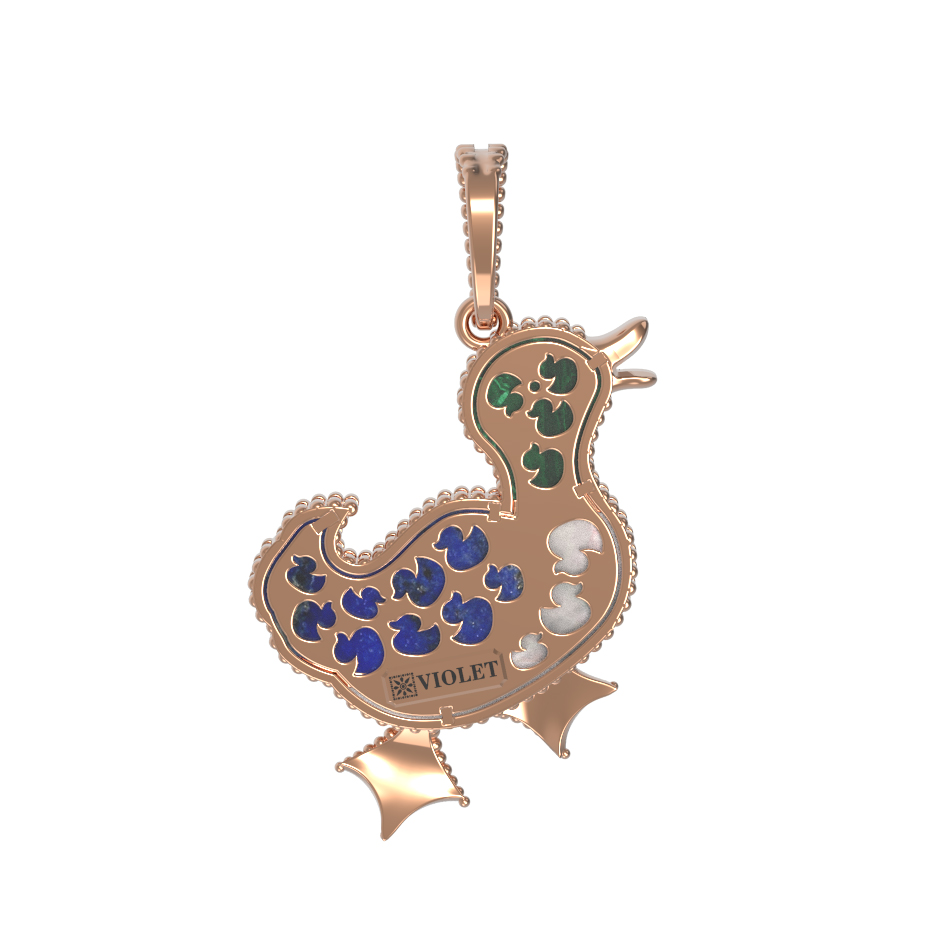 Подвеска из золота c эмаль, лазуритом, малахитом и перламутром