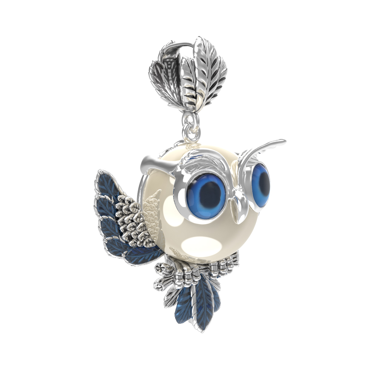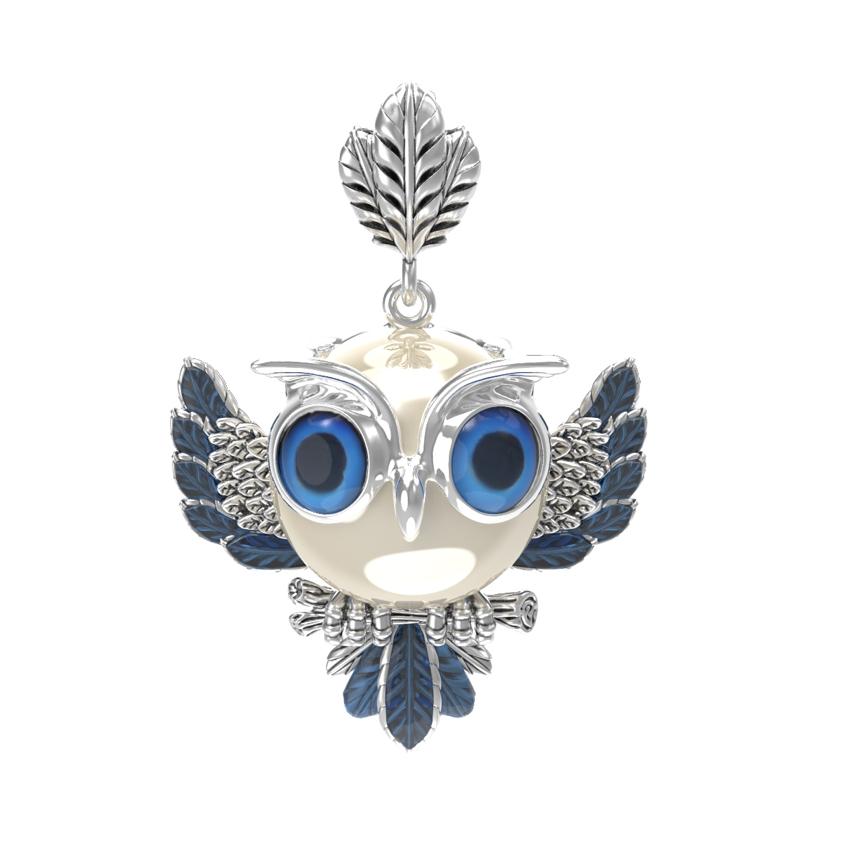 Подвеска из белого золота c эмаль и жемчугом
