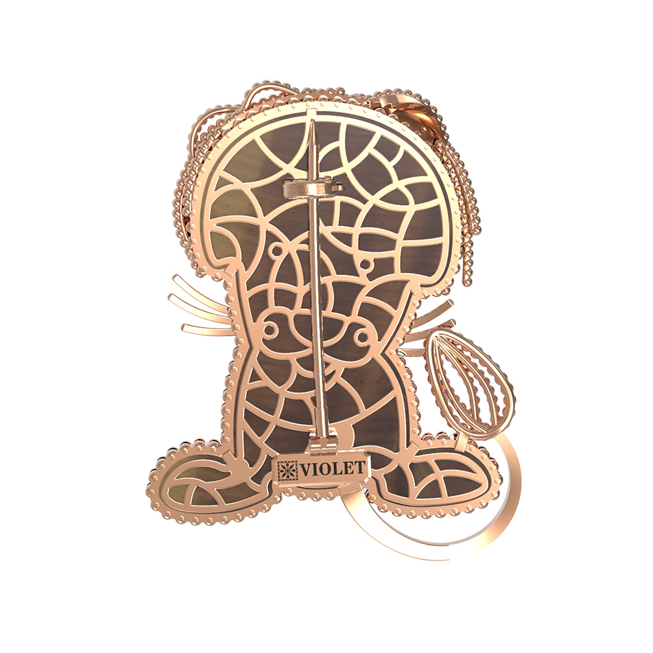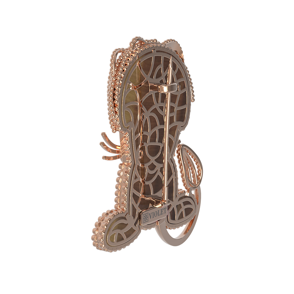 Брошь из золота c эмаль и тигровым глазом