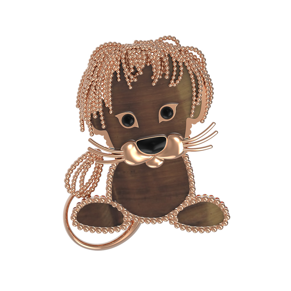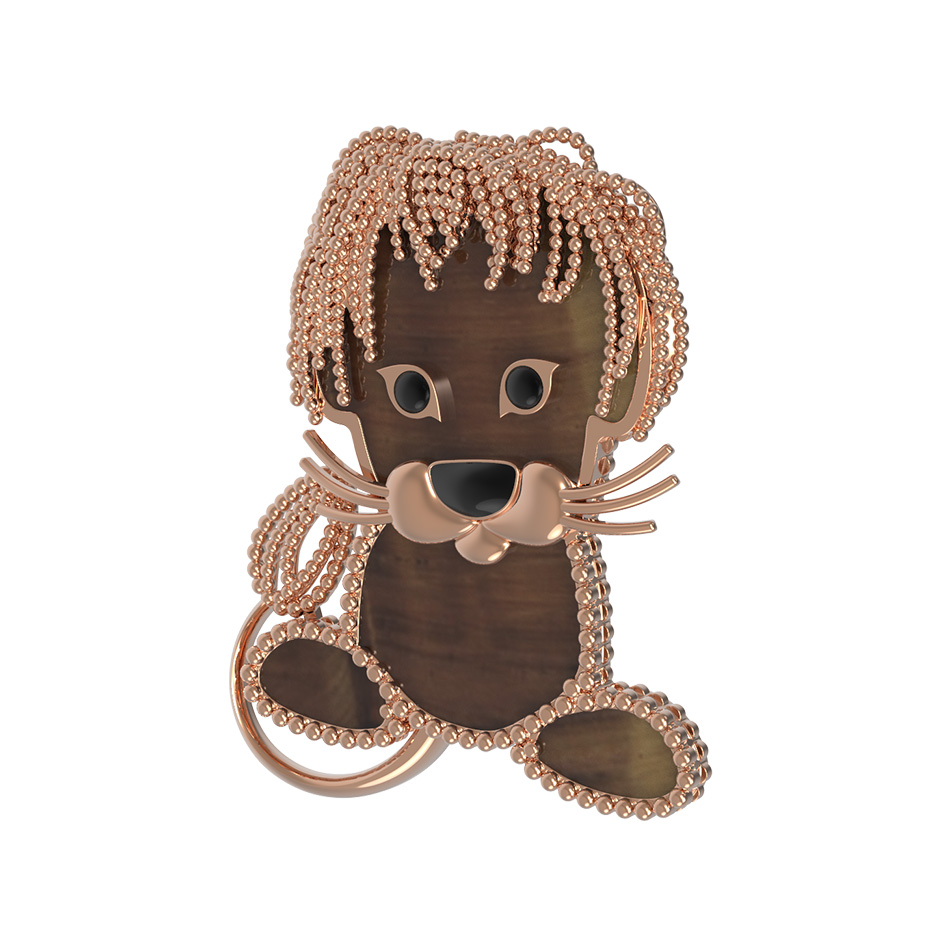 Брошь из золота c эмаль и тигровым глазом