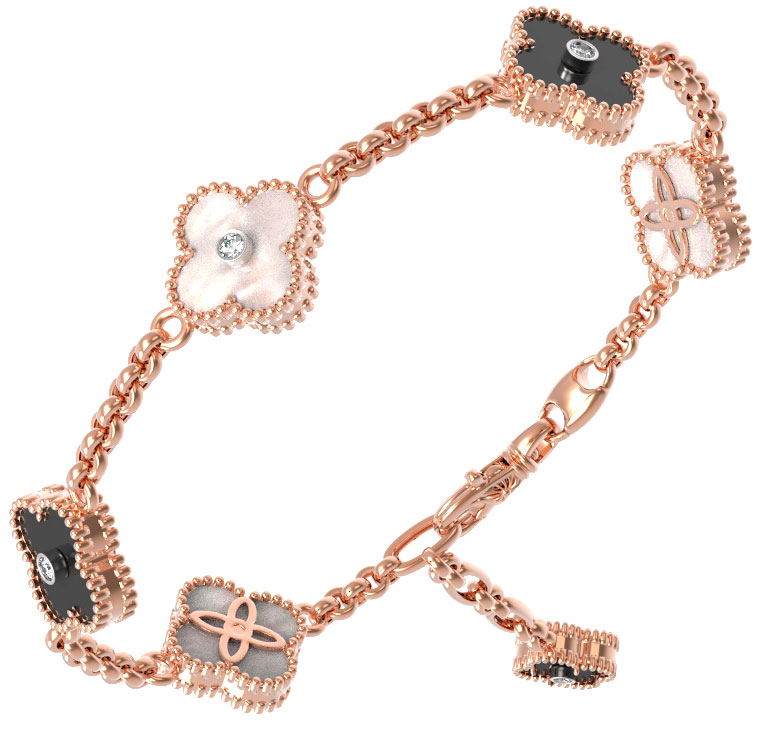 Браслет из золота c бриллиантами, ониксом и перламутром
