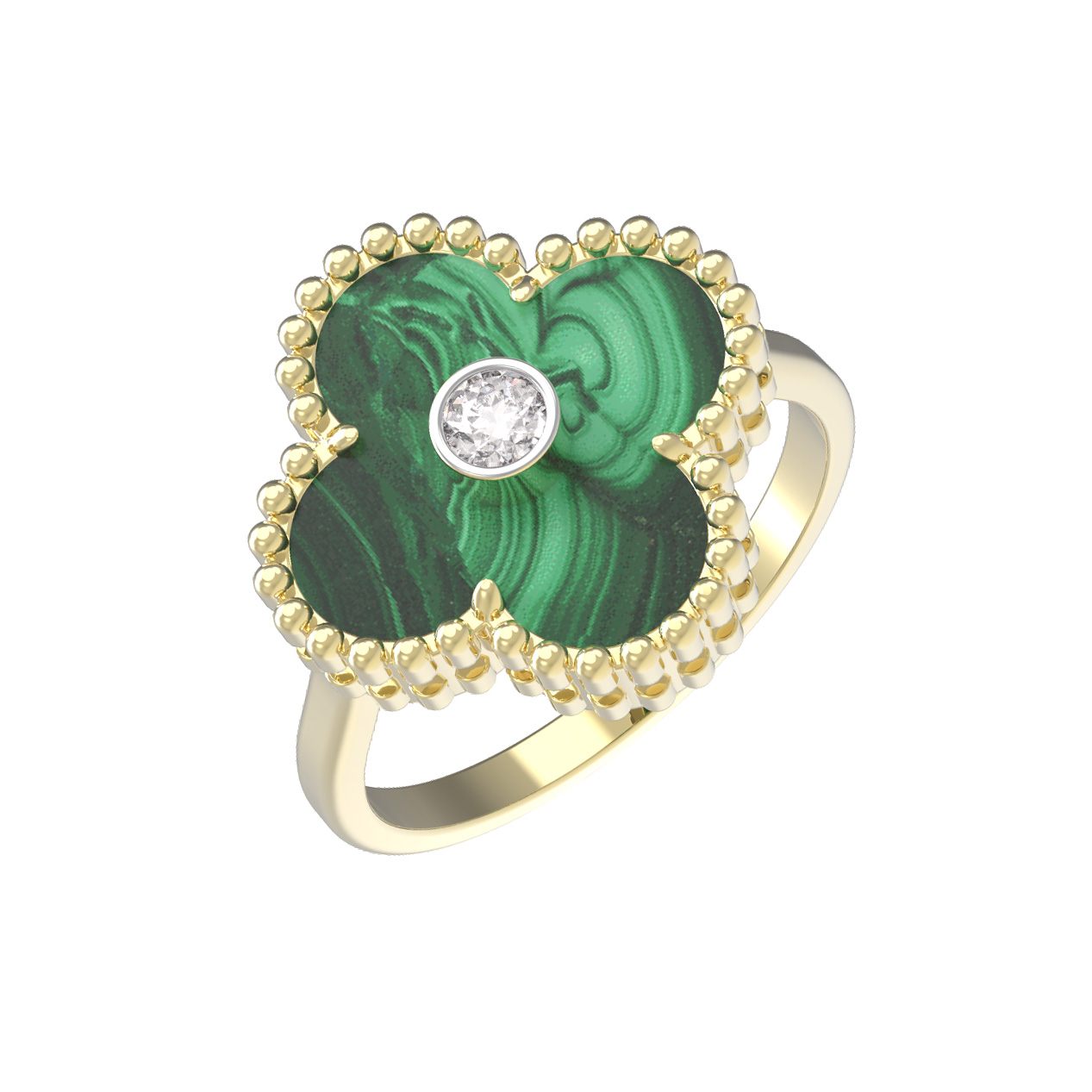 Кольцо из лимонного золота c бриллиантами и малахитом