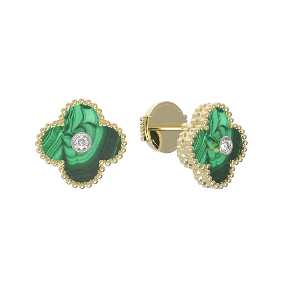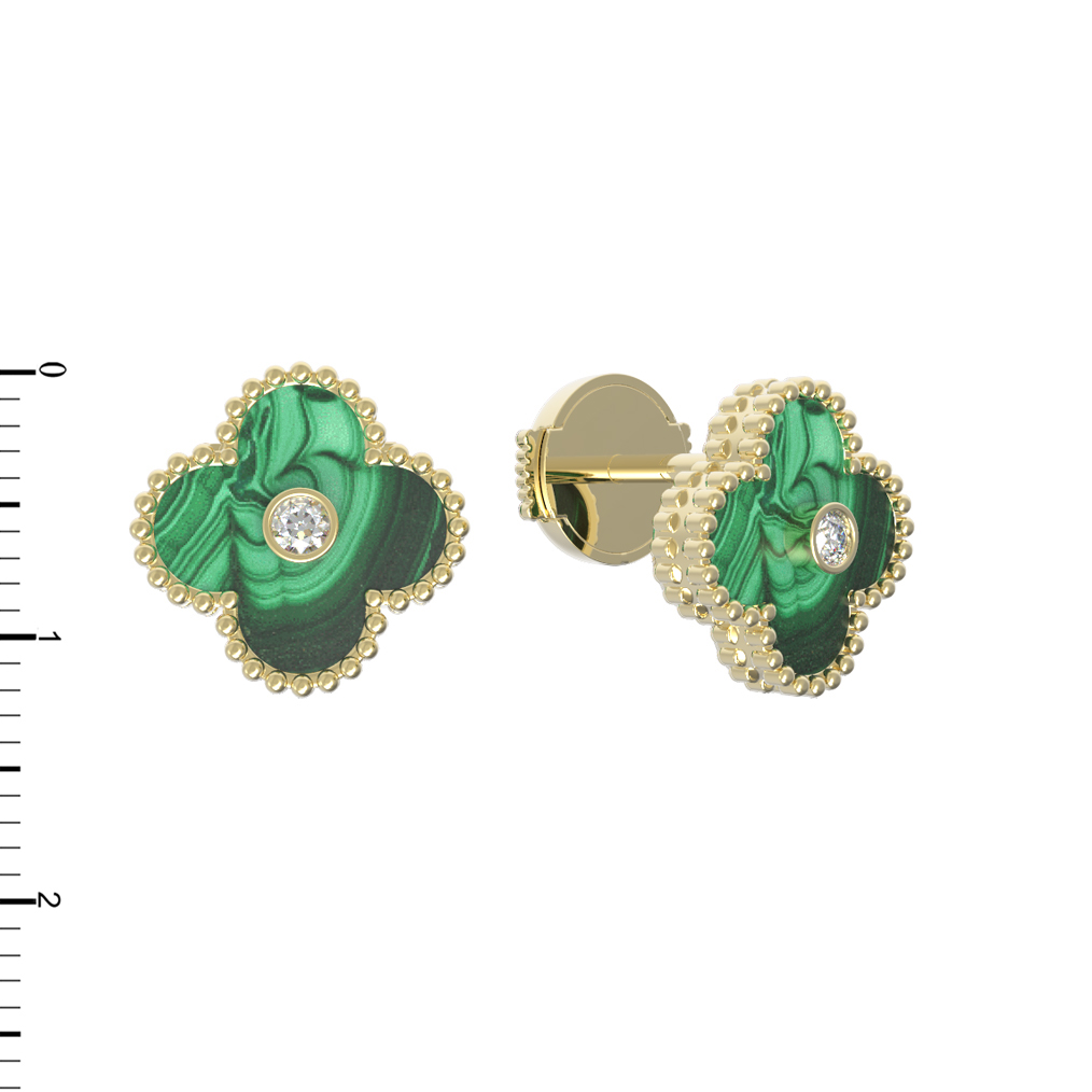 Серьги из лимонного золота c бриллиантами и малахитом