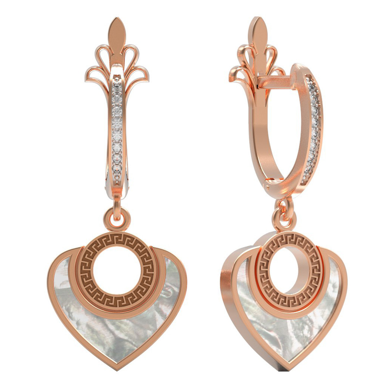 Серьги из золота c фианитом и перламутром