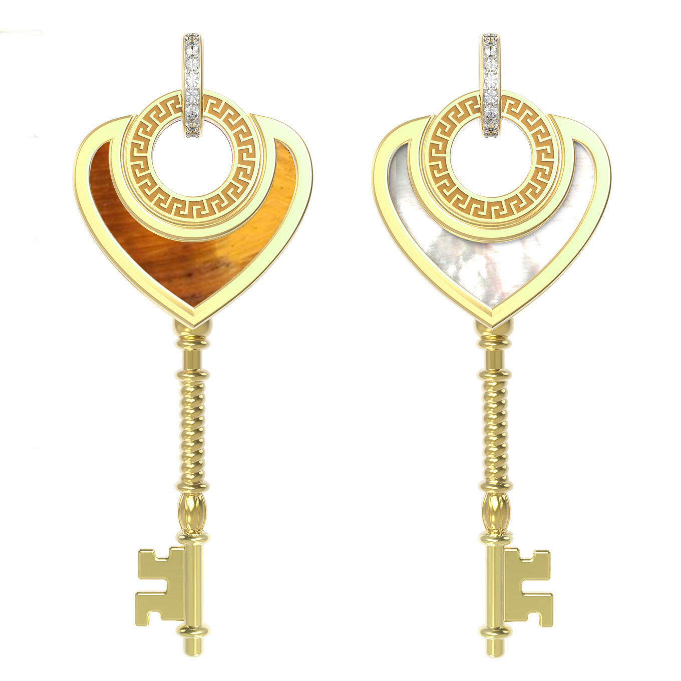 Из золота c фианитом, тигровым глазом и перламутром