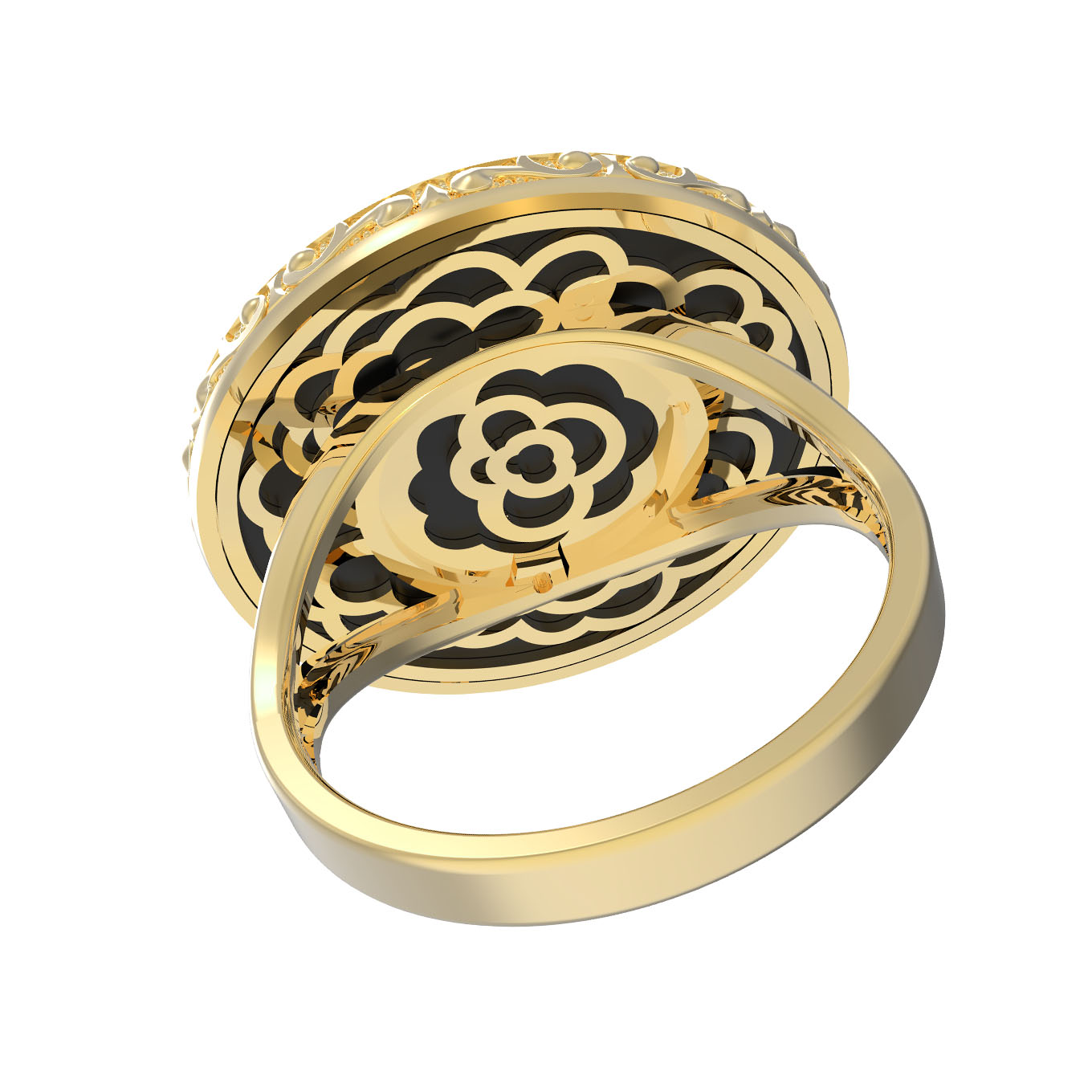 Кольцо из лимонного золота c ониксом и перламутром