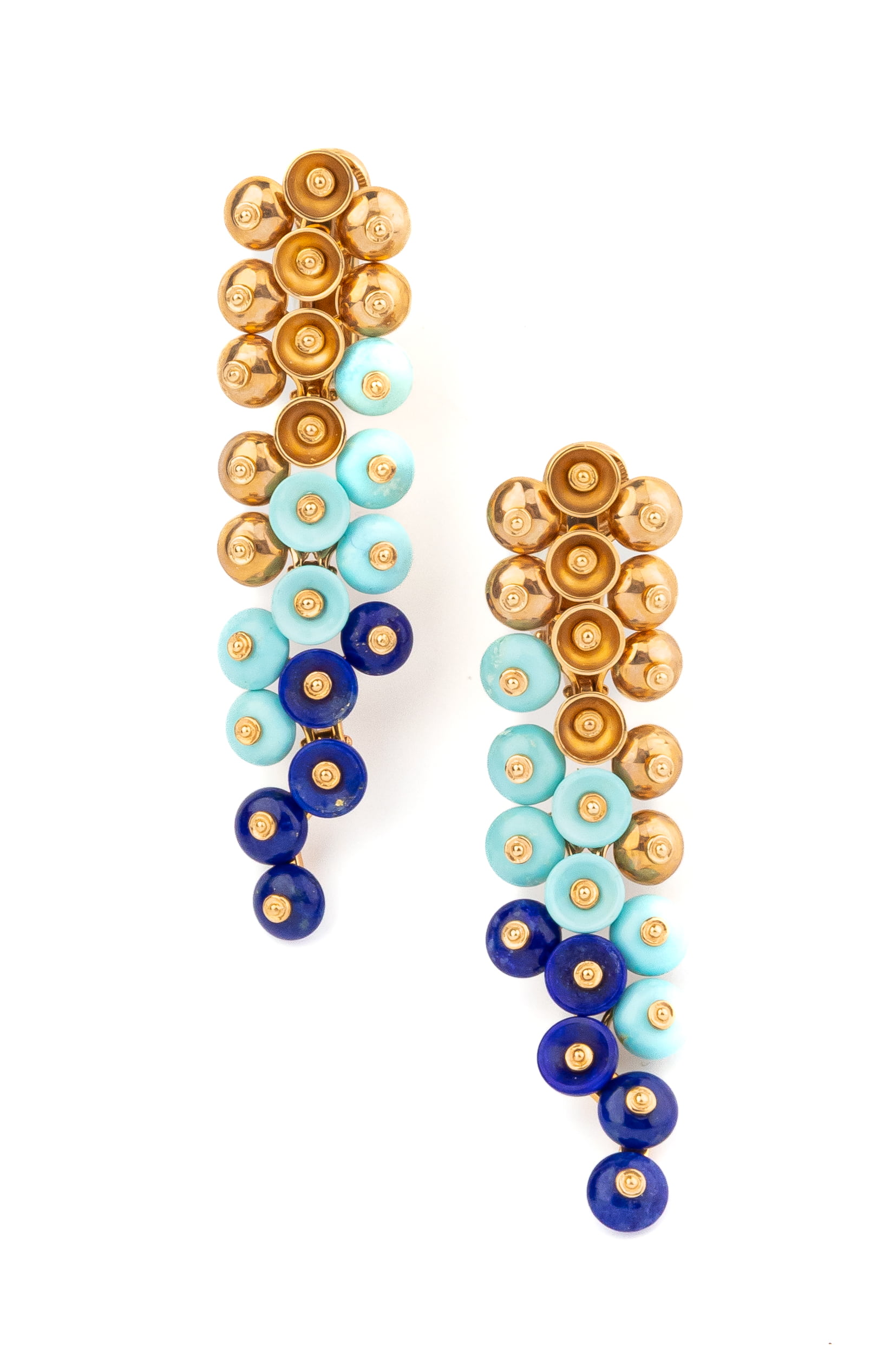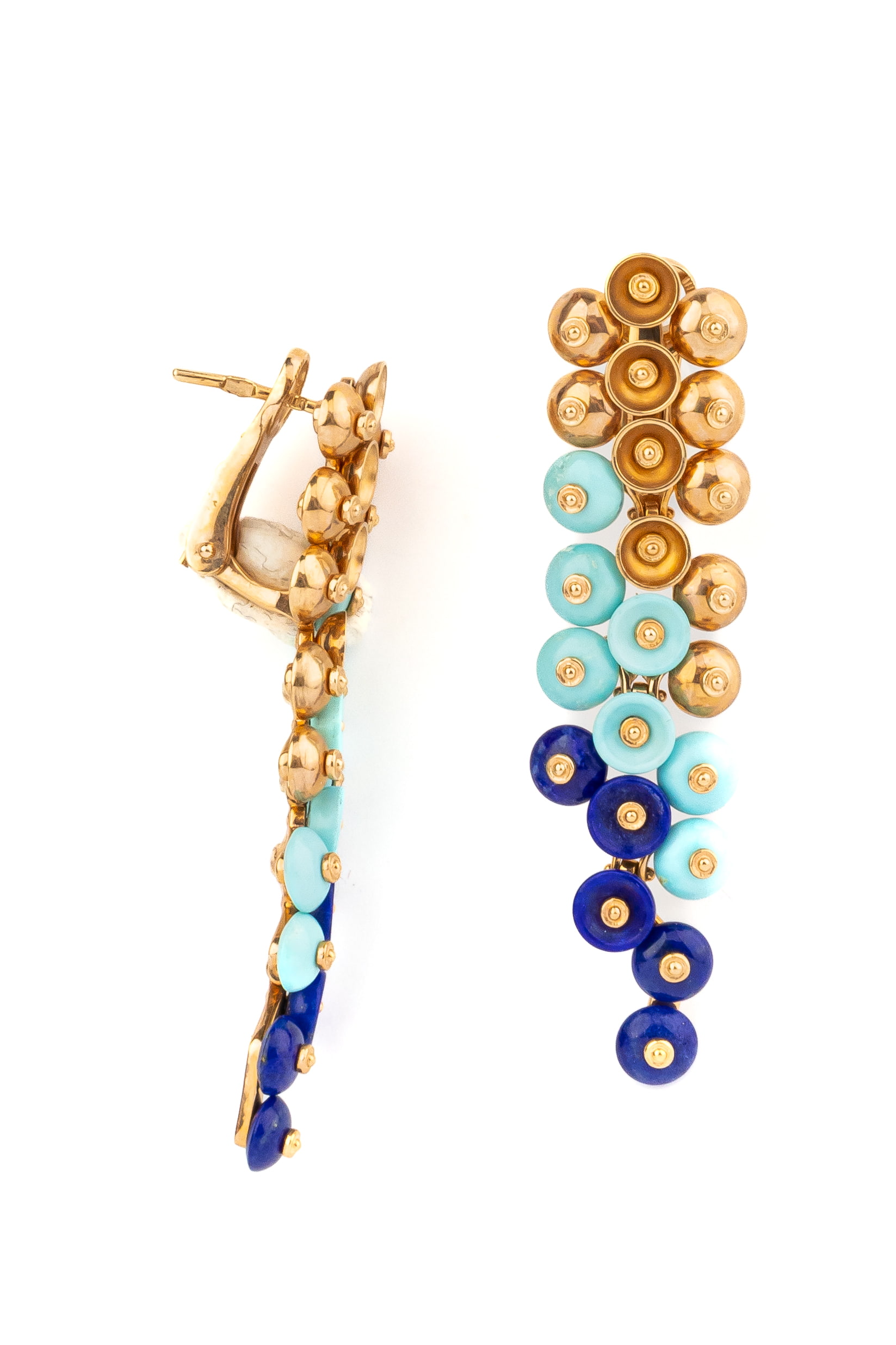 Серьги из золота c бирюзой и лазуритом