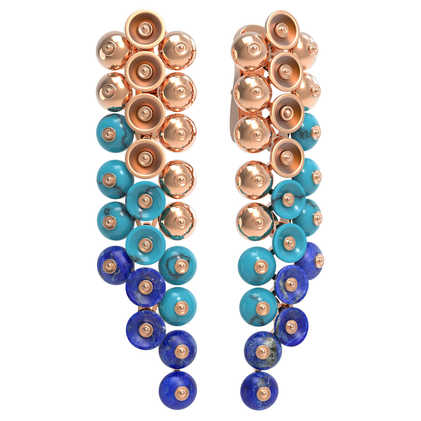 Серьги из золота c бирюзой и лазуритом