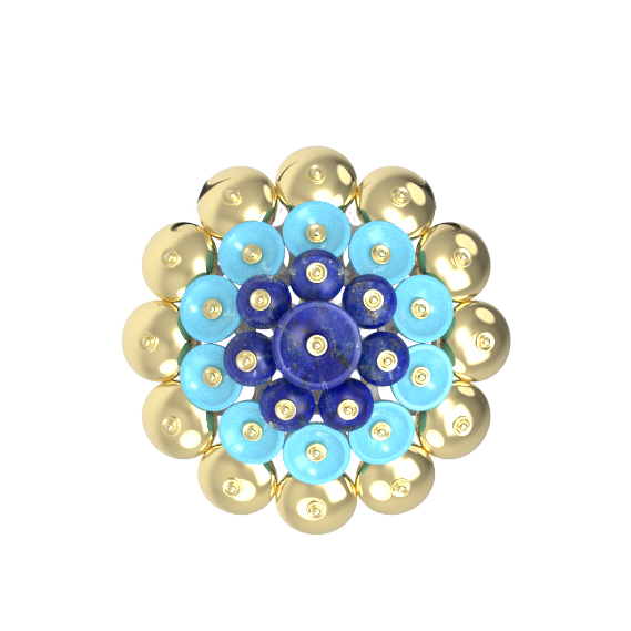 Подвеска из лимонного золота c бирюзой и лазуритом