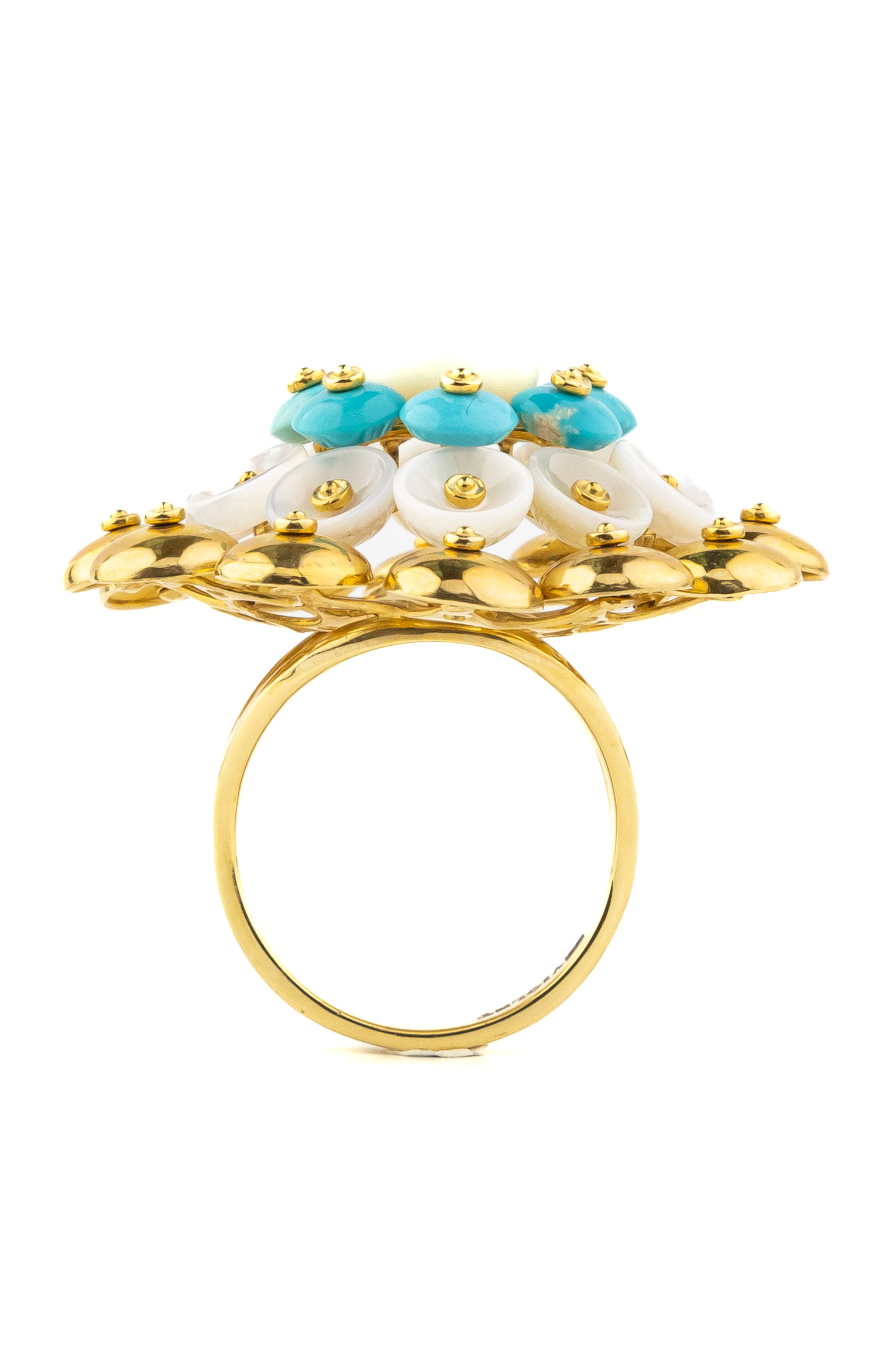 Кольцо из лимонного золота c бирюзой и перламутром