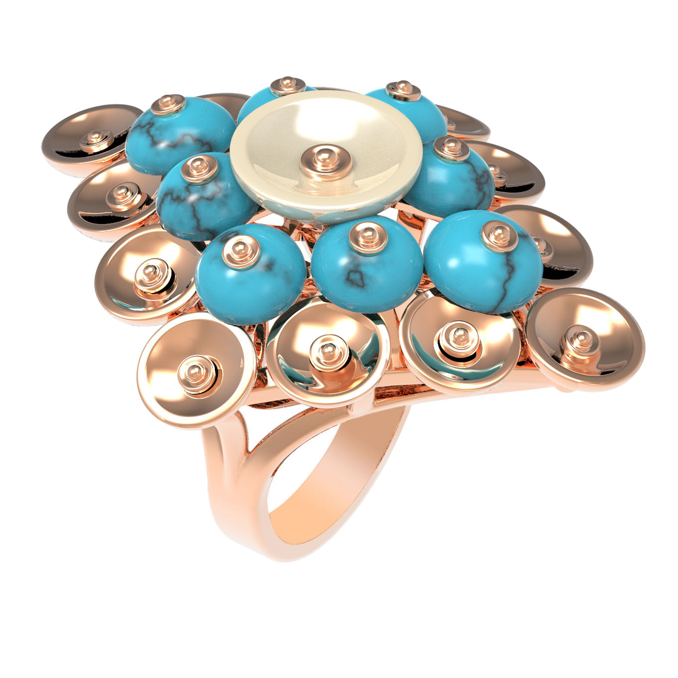 Кольцо из золота c бирюзой и перламутром