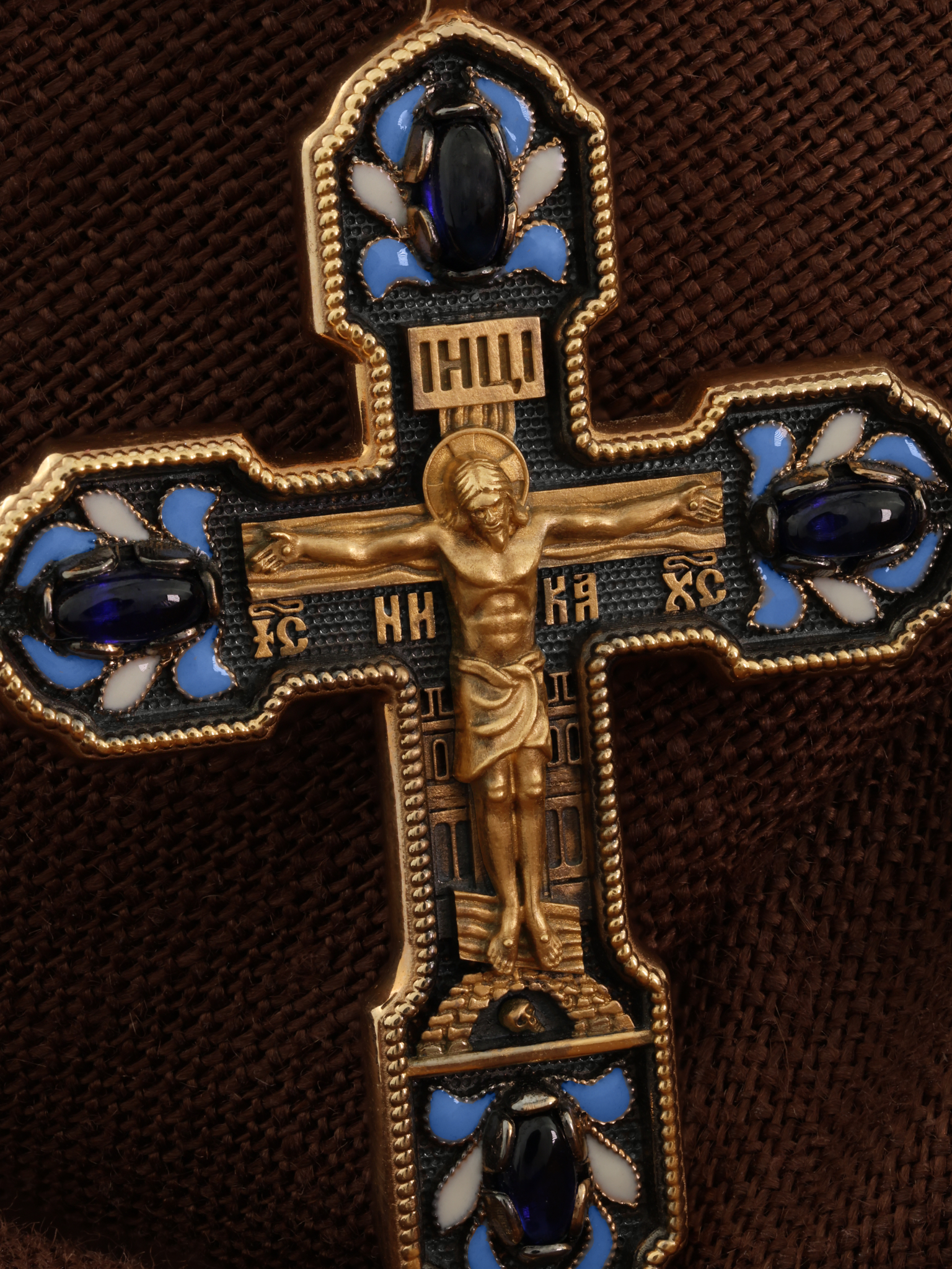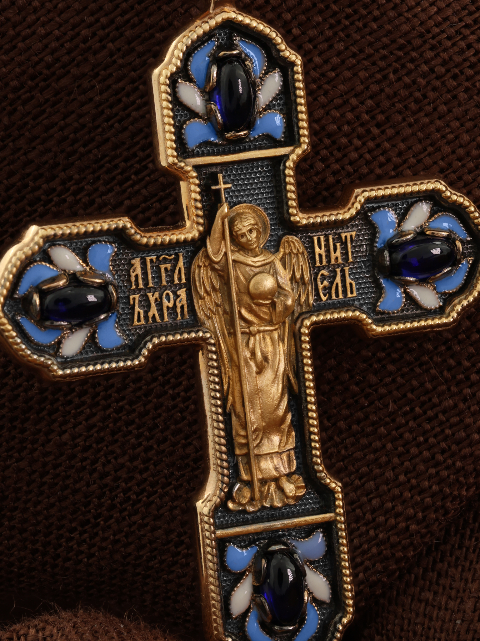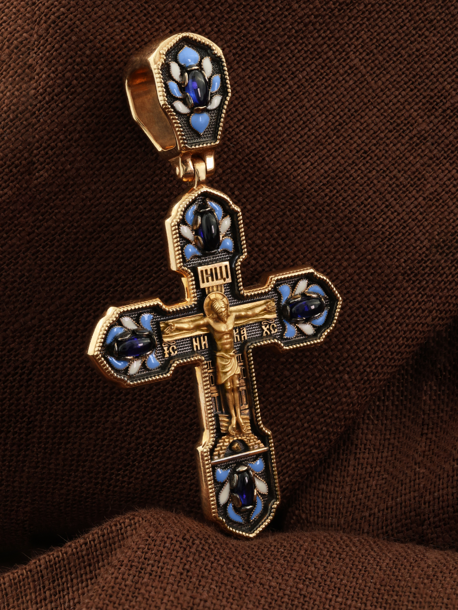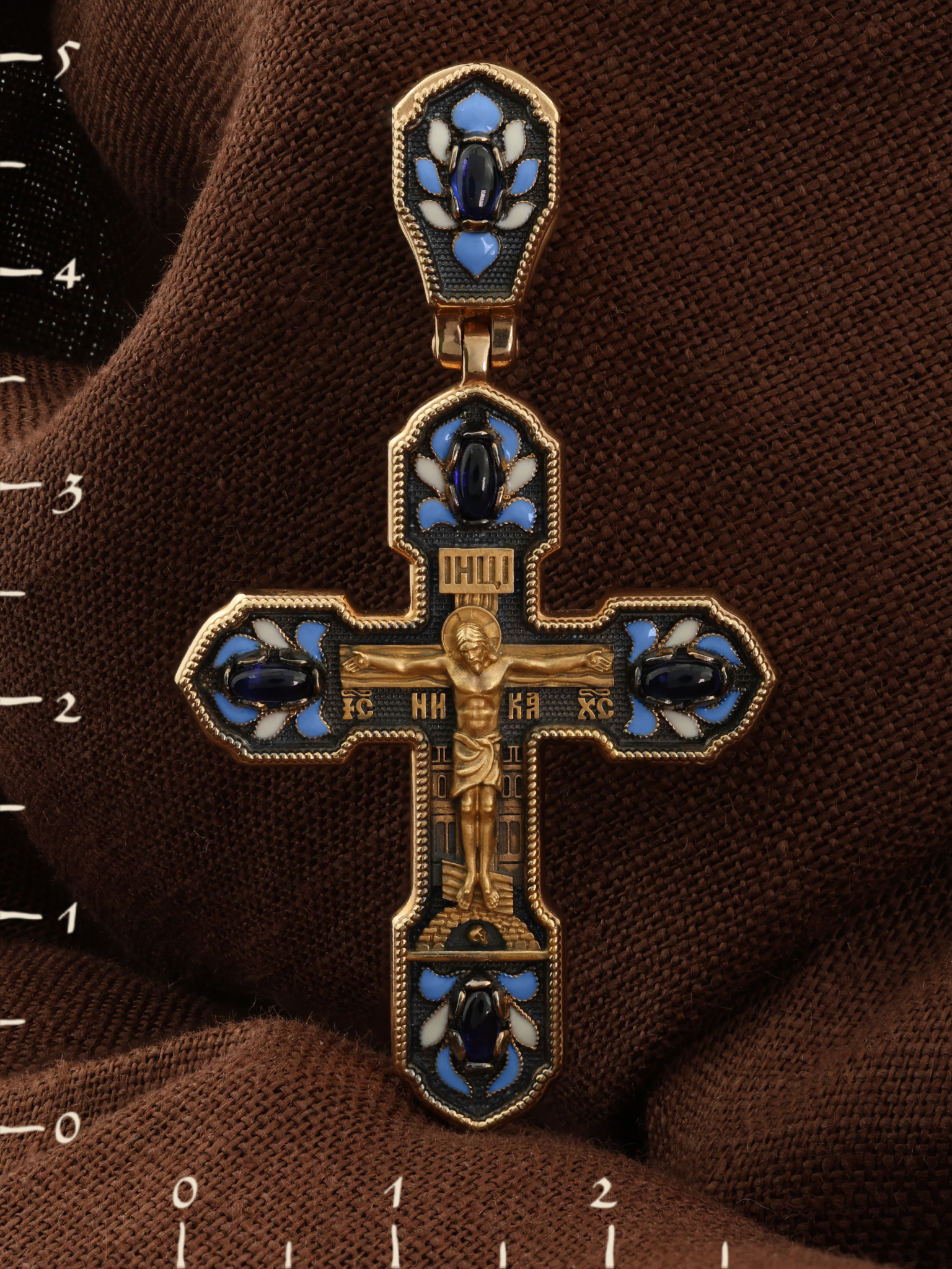 Крест из золота c эмаль и сапфиром