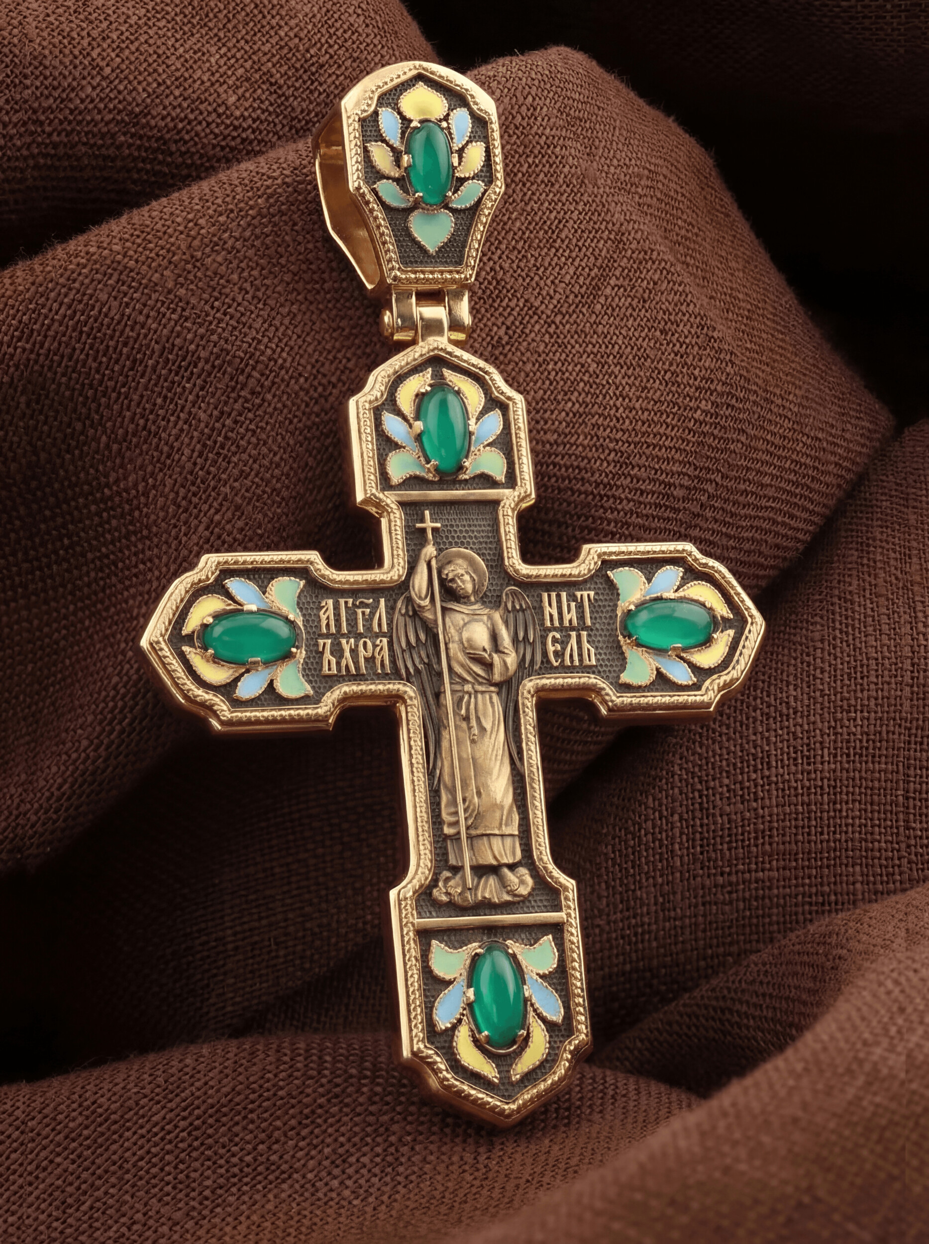 Основой композиции оборотной стороны является ростовое изображение Ангела Хранителя. Ангел, который дается каждому человеку в Крещении для попечения и защиты его души. Ангел Хранитель неотступно находится рядом с человеком, помогая, оберегая и наставляя его, а после смерти сопровождает его душу через мытарства.
