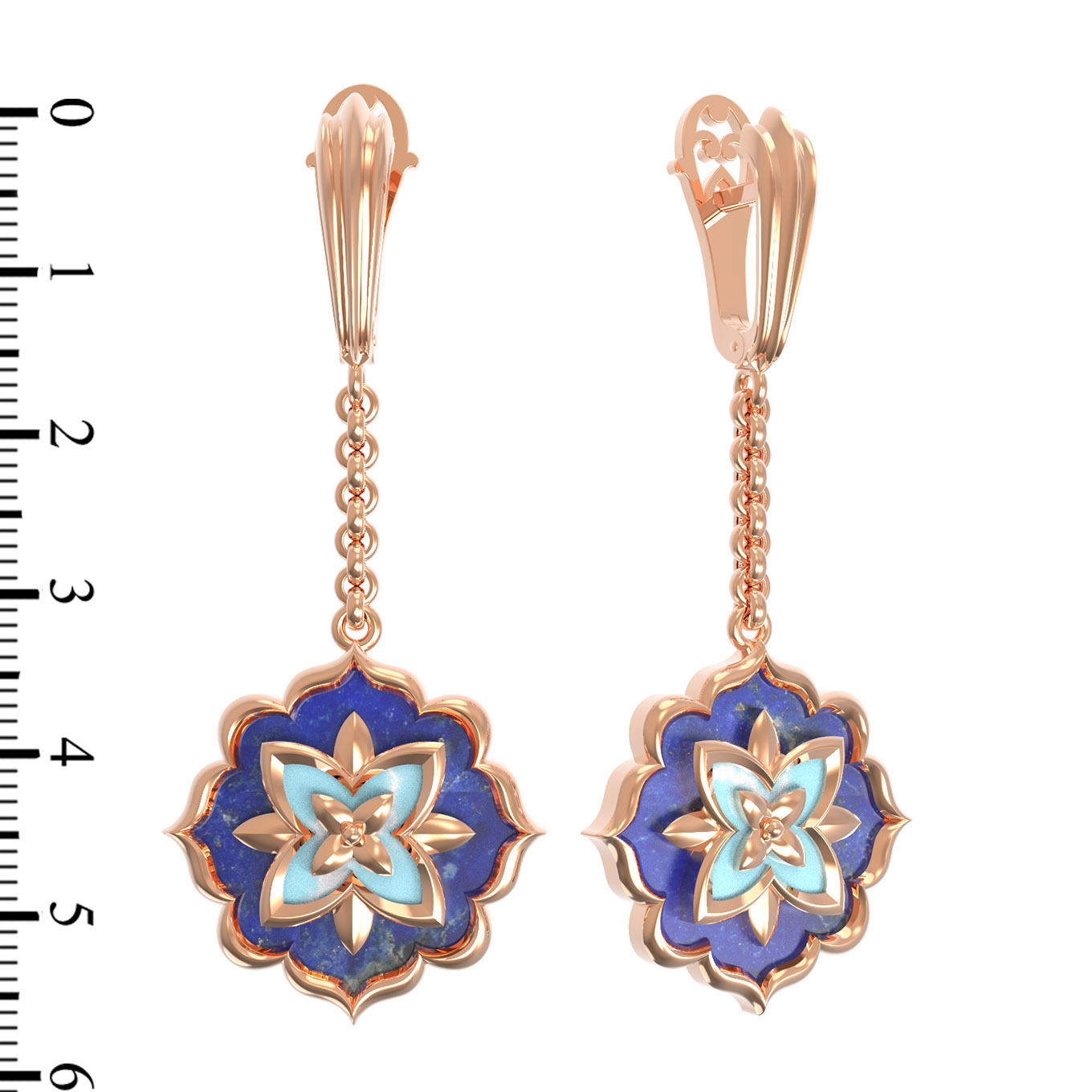 Серьги из золота c бирюзой и лазуритом