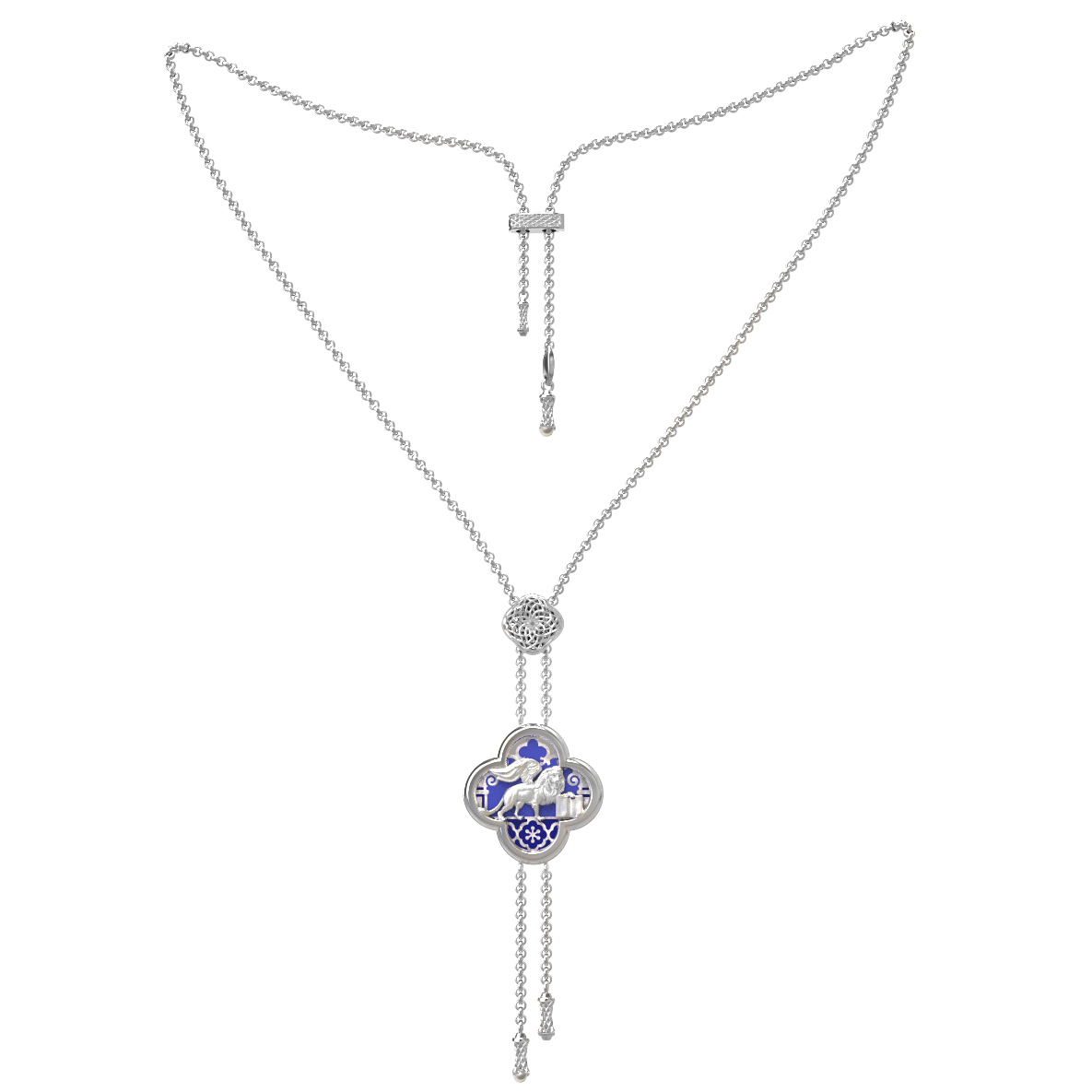 Колье из белого золота c эмаль, жемчугом и перламутром