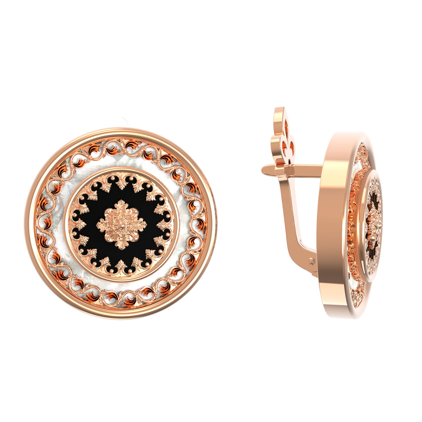 Серьги из золота c ониксом и перламутром