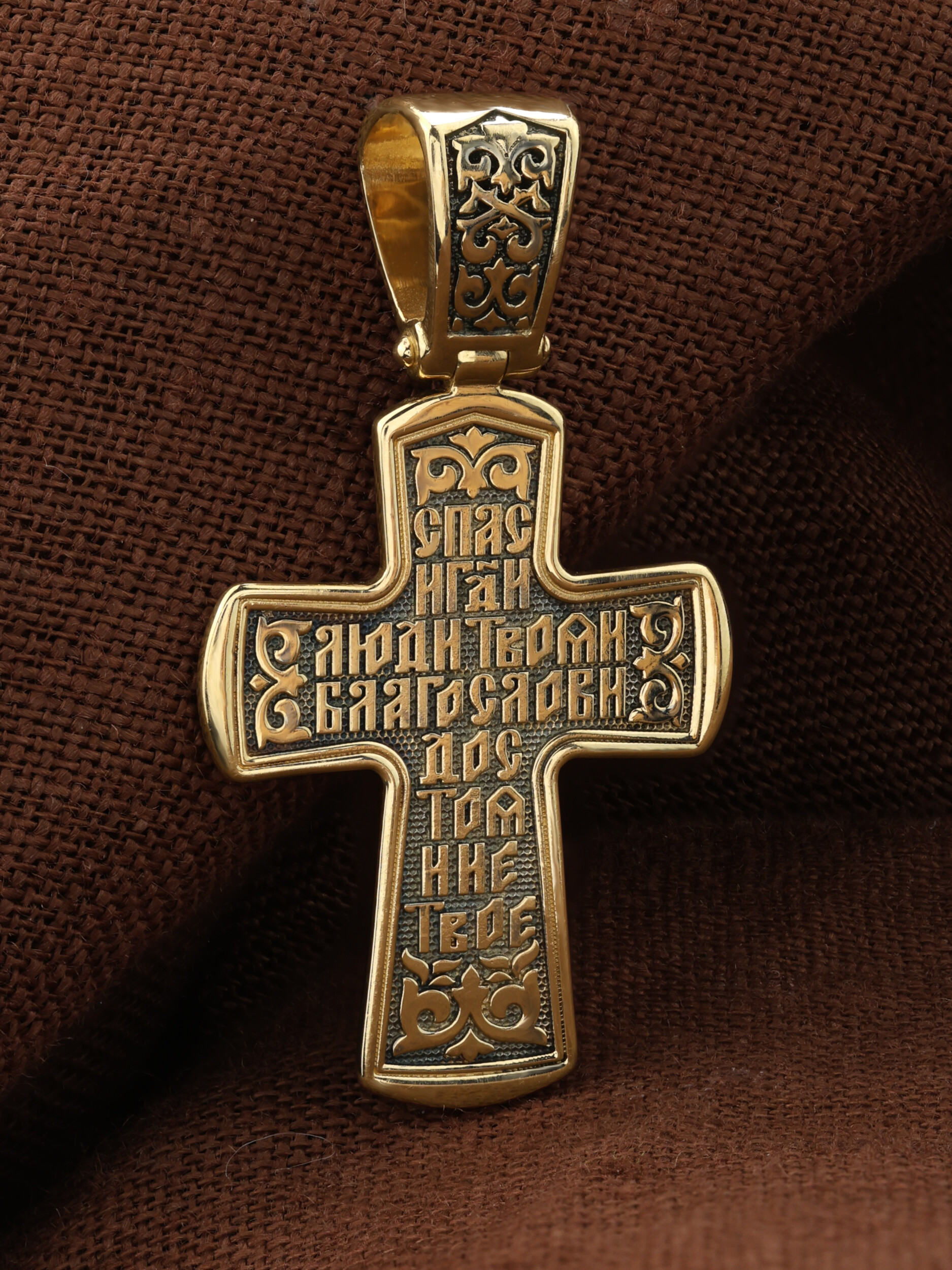 На оборотной стороне креста написан начальный стих тропаря Животворящему Кресту Господню: «Спаси, Господи, люди Твоя и благослови достояние твое…».