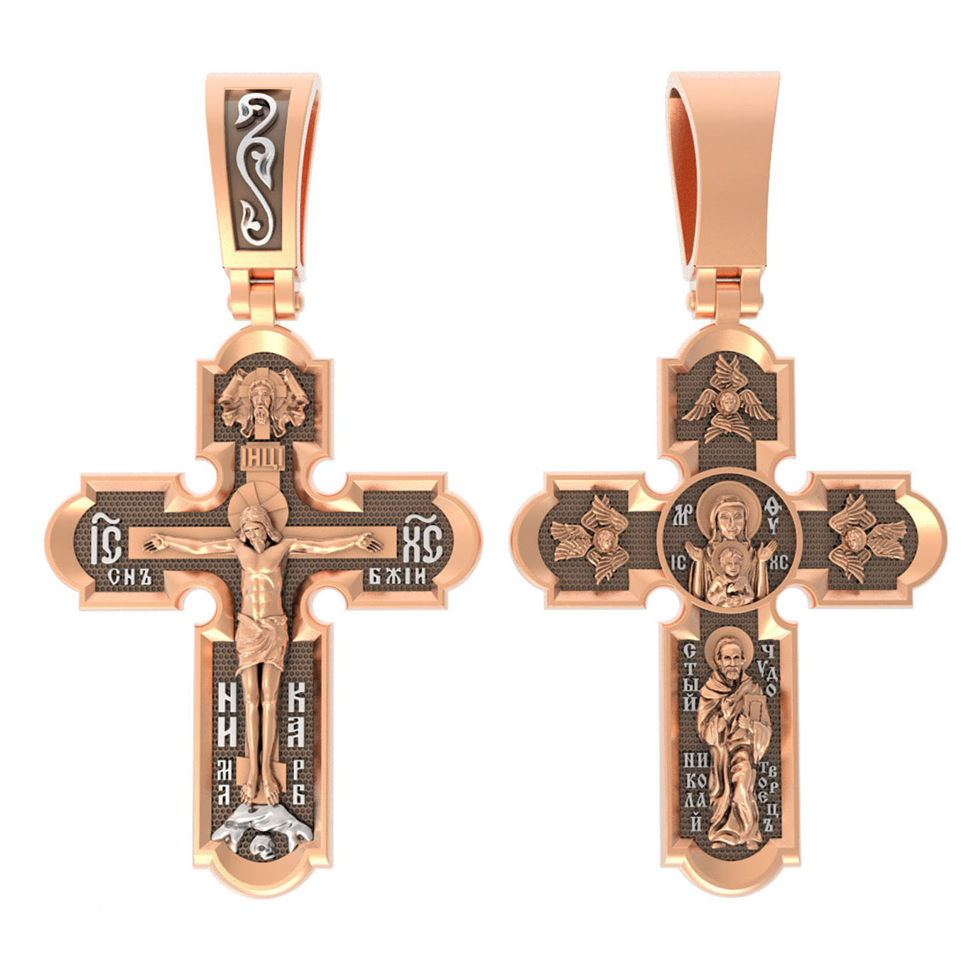 У основания креста в полный рост изображен самый любимый святой Православной Церкви — Николай Чудотворец. Святой почитается как целитель болезней, покровитель путешествующих, особенно по морю, помощник в торговле, учебе, а также в поисках достойного супруга.