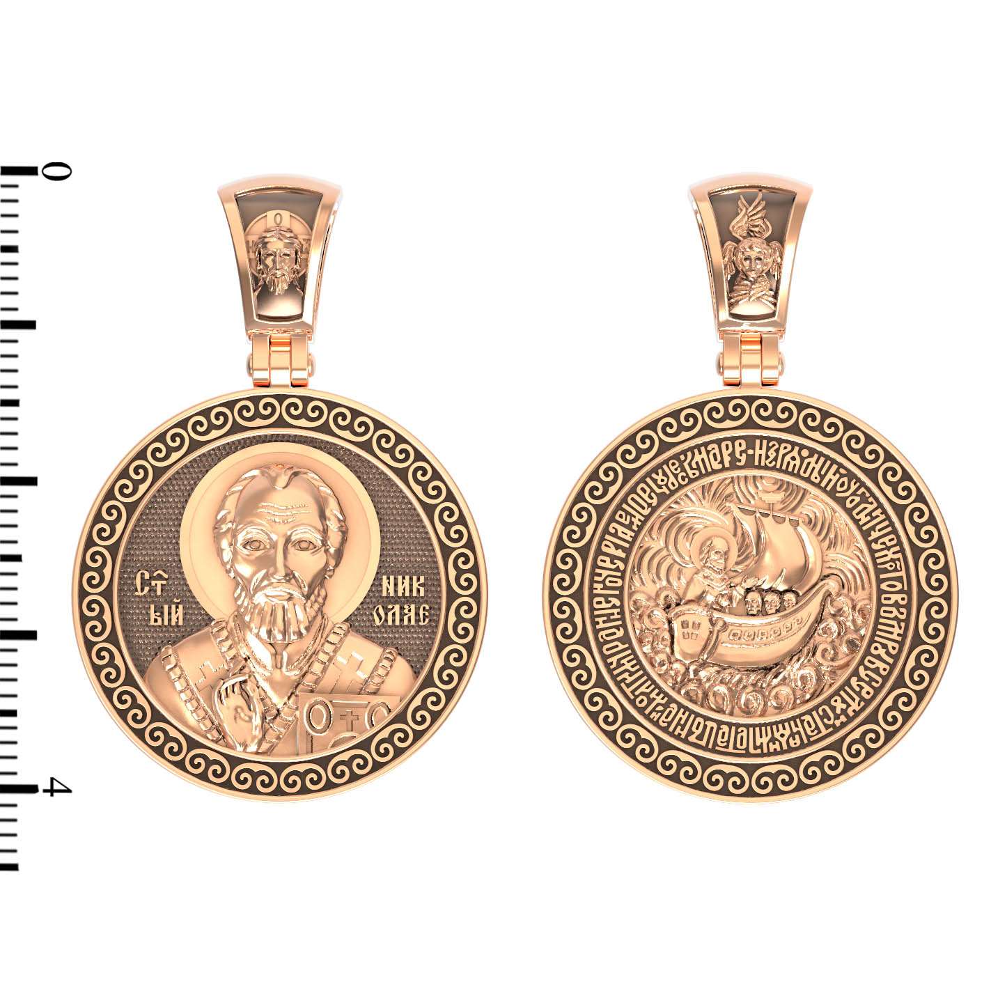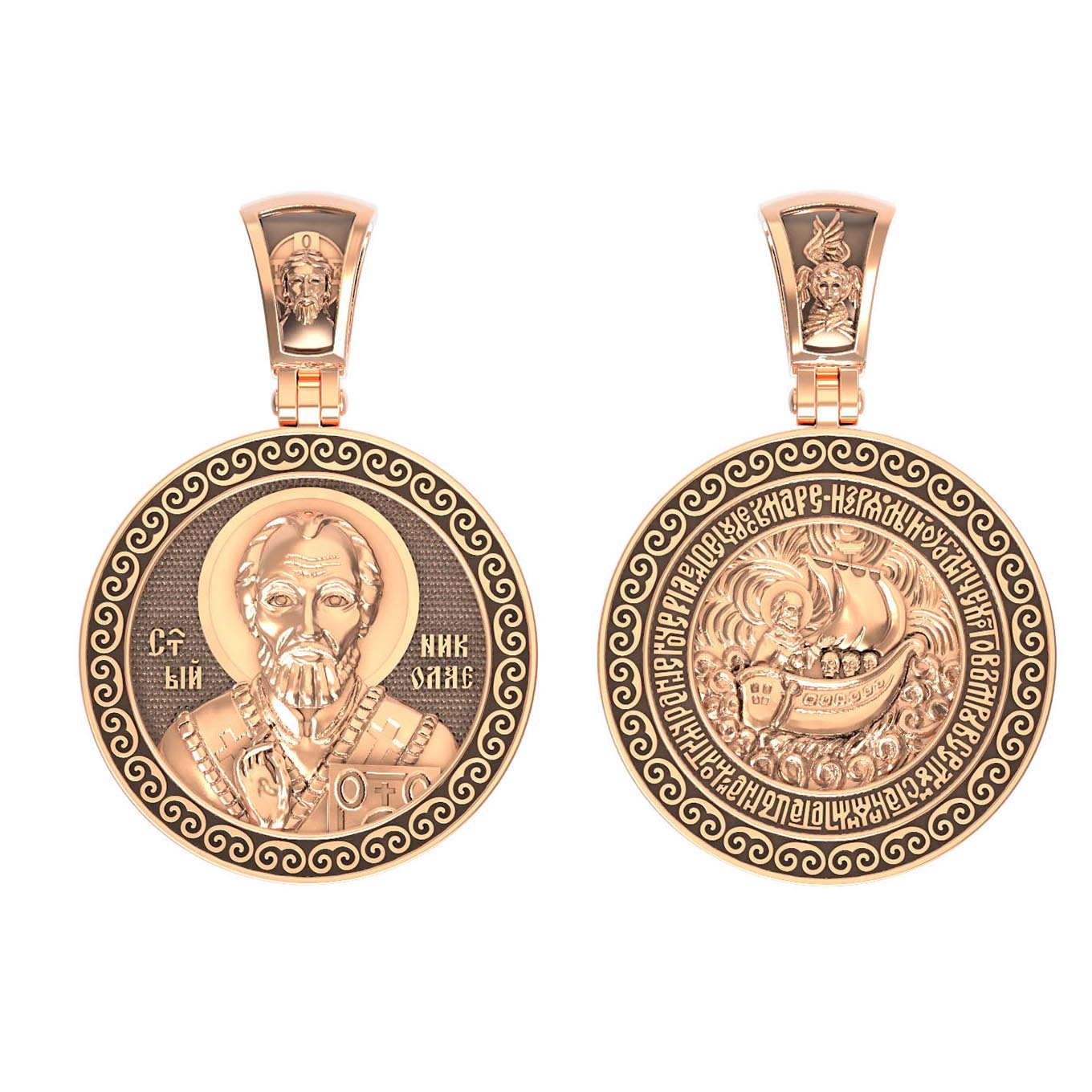 Лицевую сторону возглавляет икона Святителя Николая Чудотворца. Живший в III веке епископ Ликийского города Миры — самый почитаемый святой не только в России, но и во всем мире. Николай Чудотворец, помощник в делах, покровитель учащихся, утешитель обиженных и нуждающихся, целитель самых страшных и тяжелых недугов, предстатель и молитвенник за людей перед Богом. Также Святитель Николай Чудотворец известен своими молитвами за путешественников, когда непрестанный ветер и бушующие волны утихают и корабль заходит в спокойную гавань.