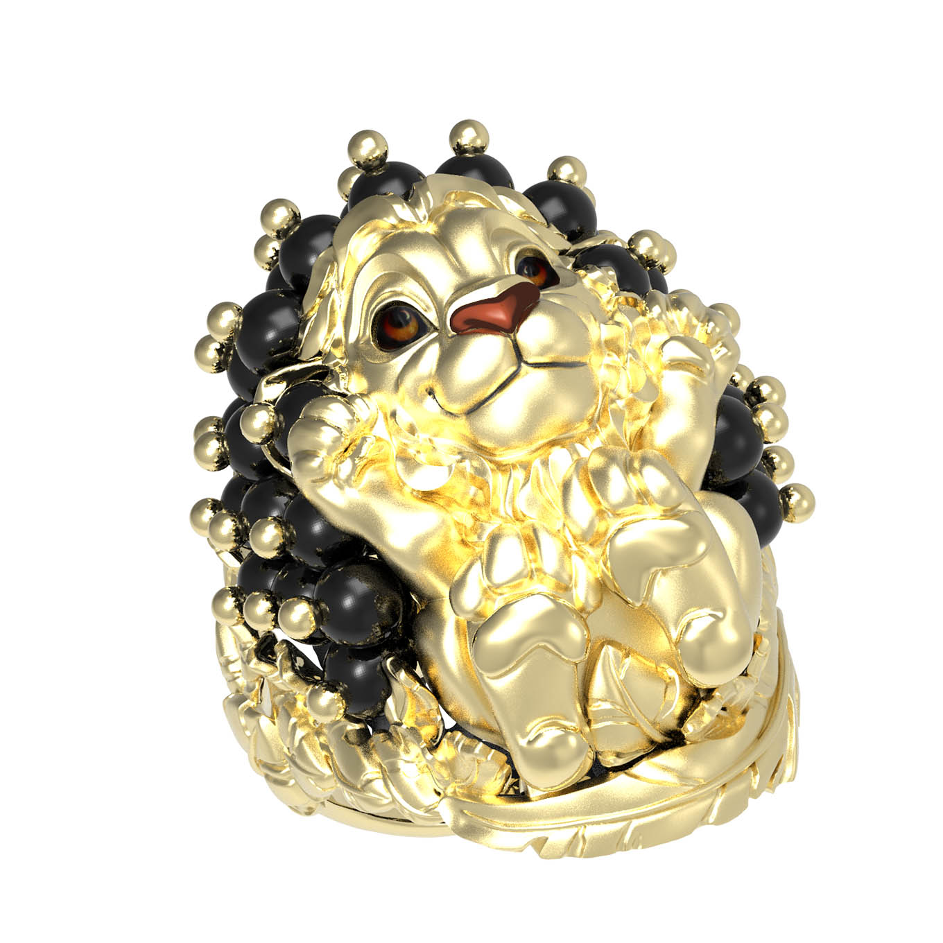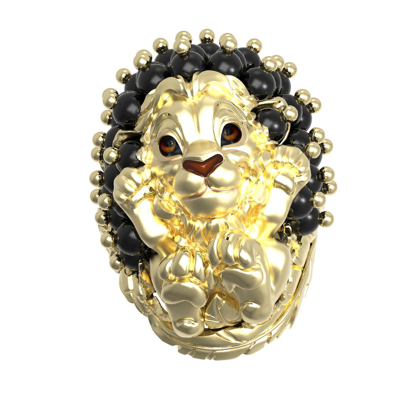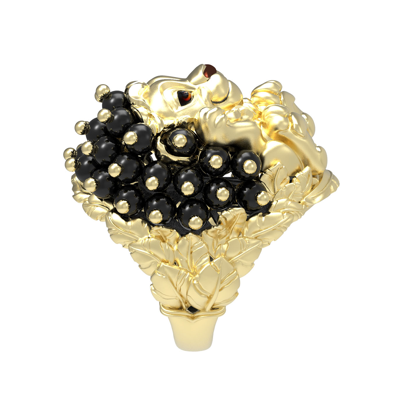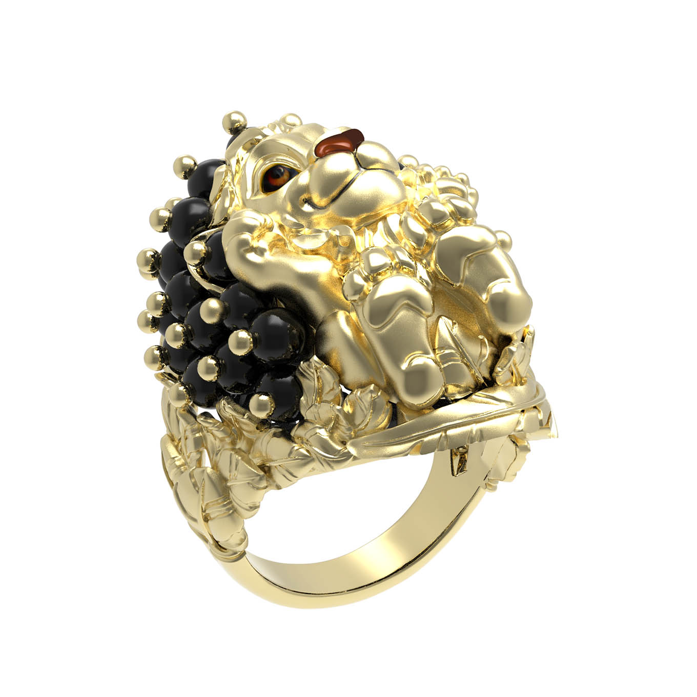 Кольцо из лимонного золота c эмаль и ониксом