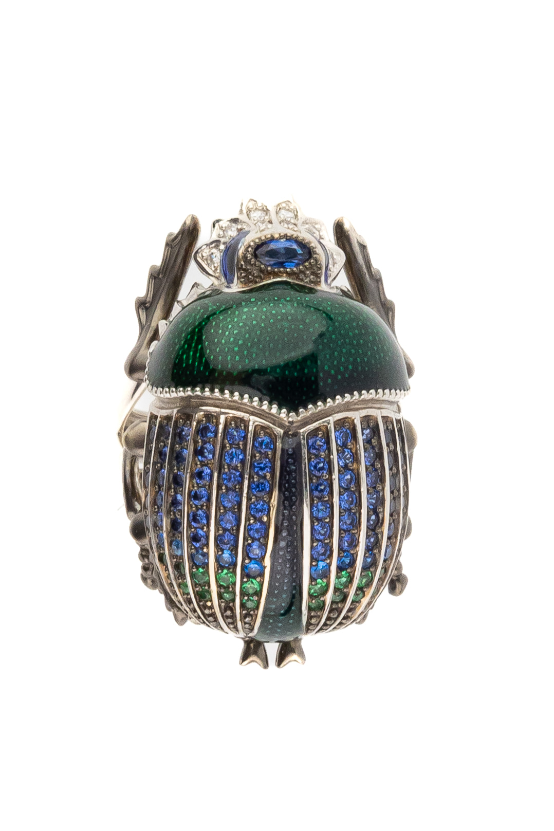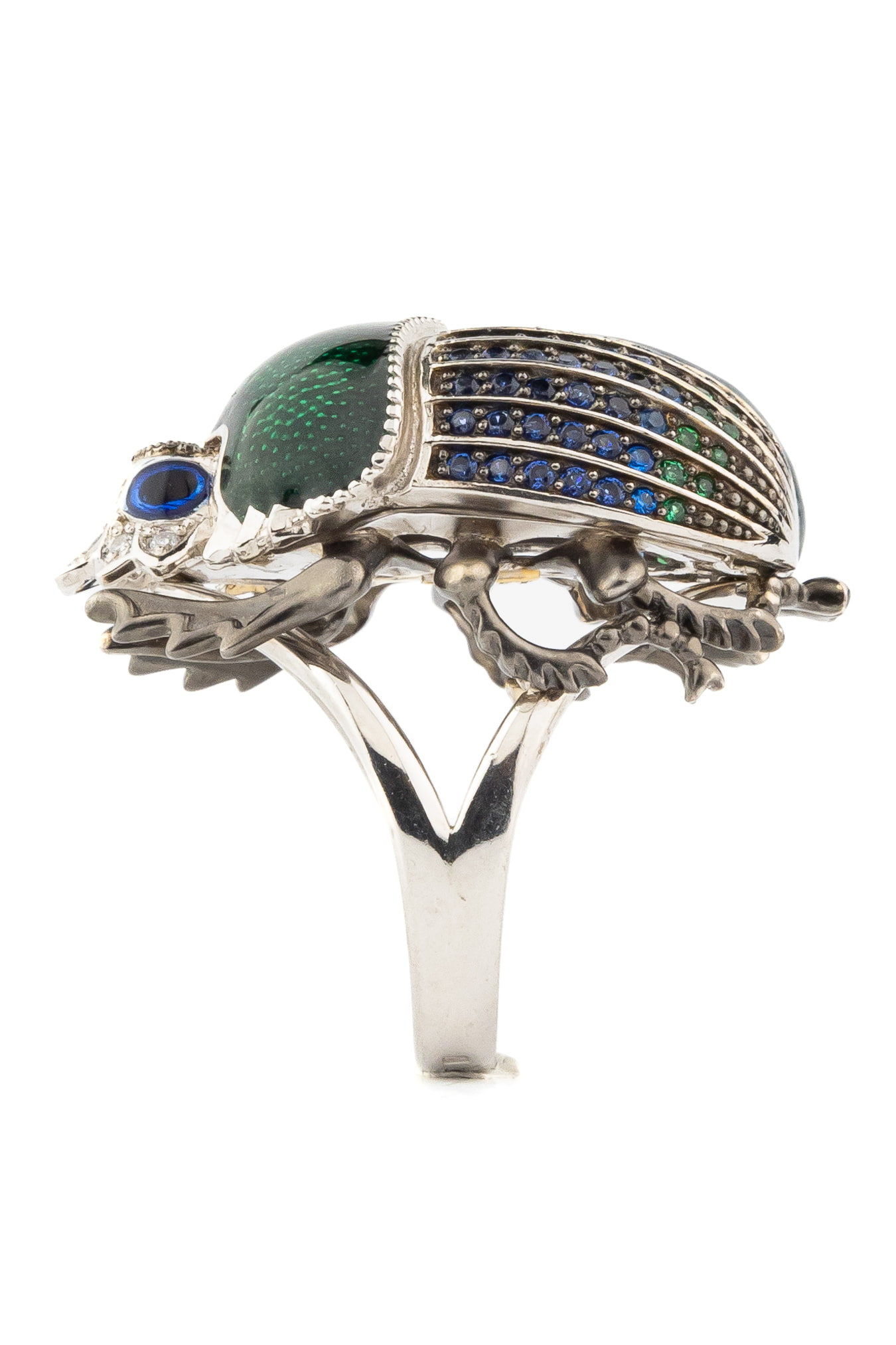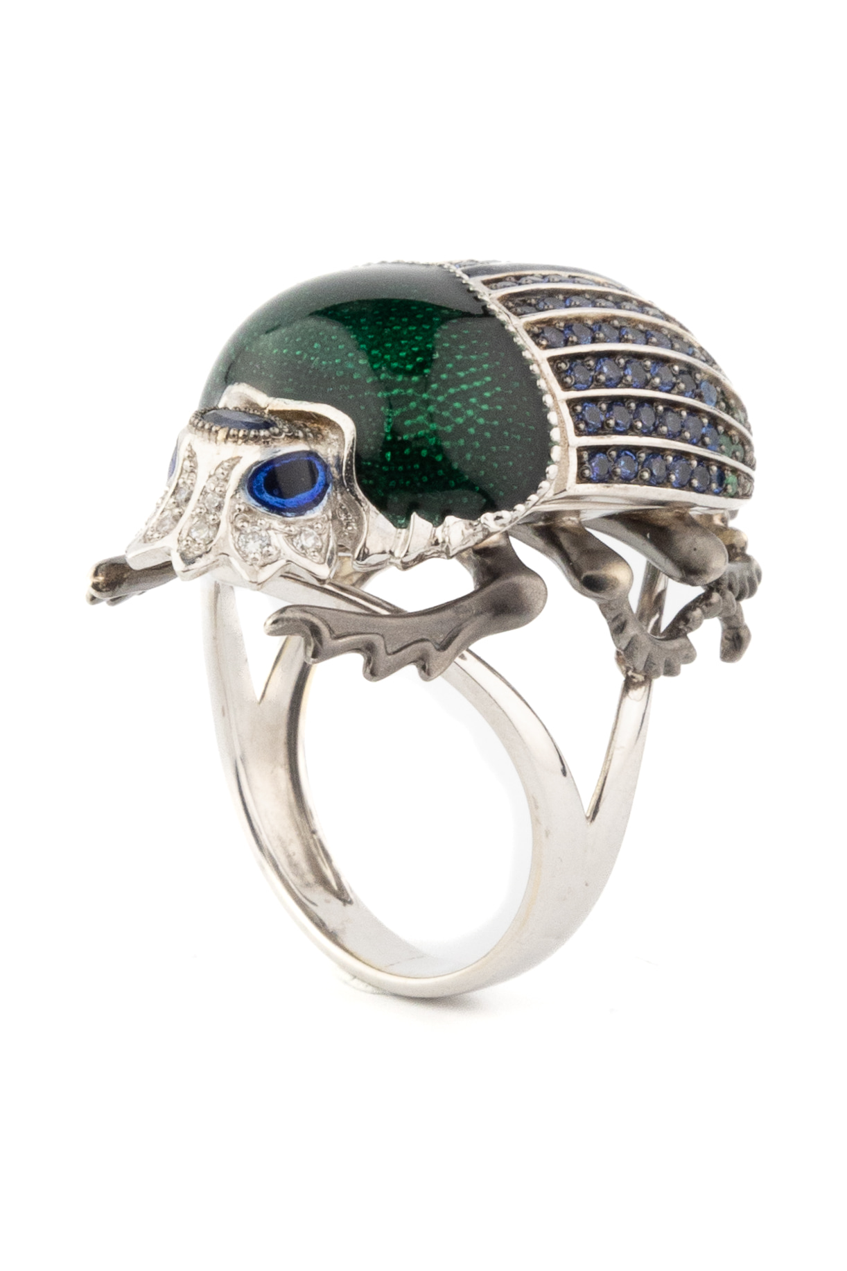 Кольцо из белого золота c эмаль, фианитом и сапфиром