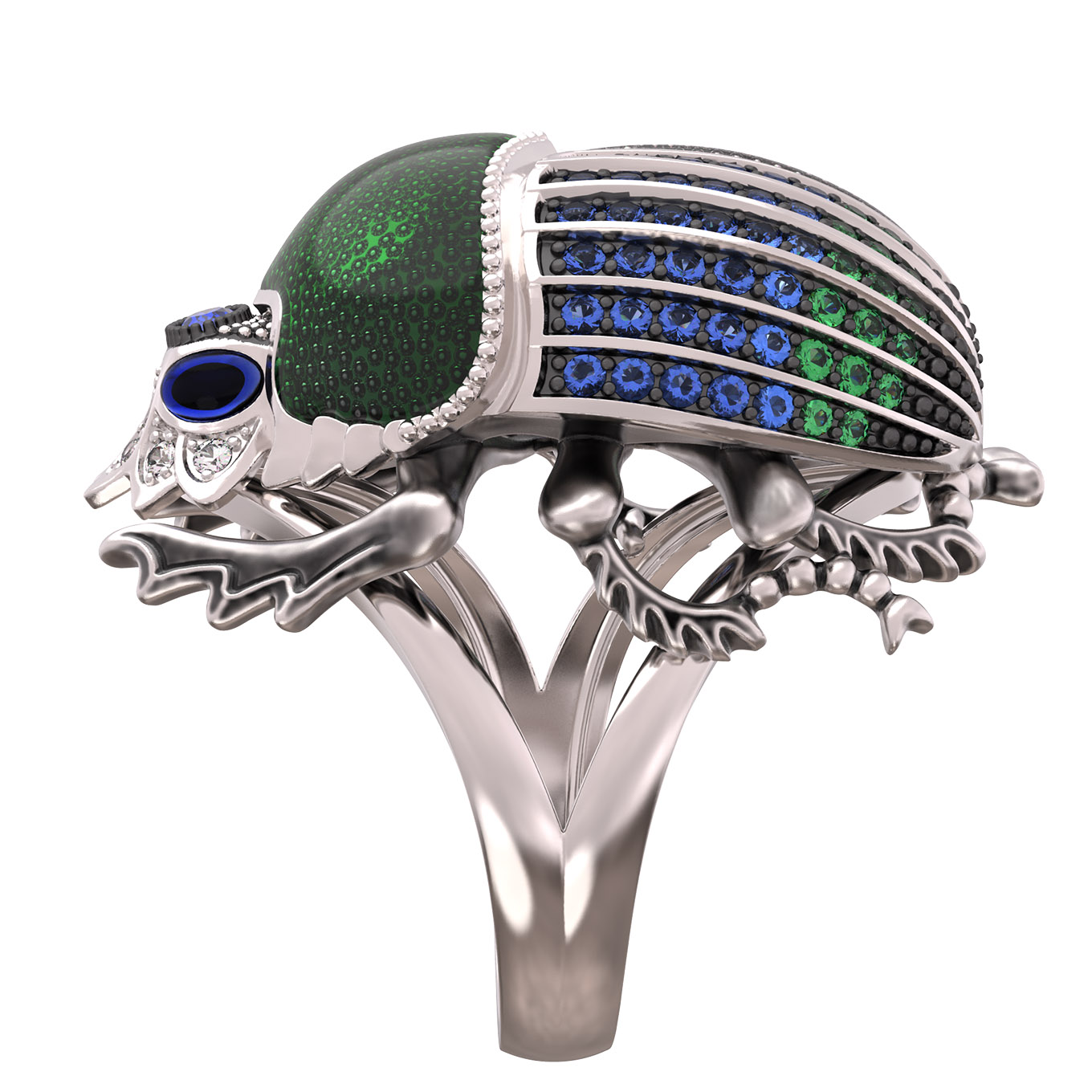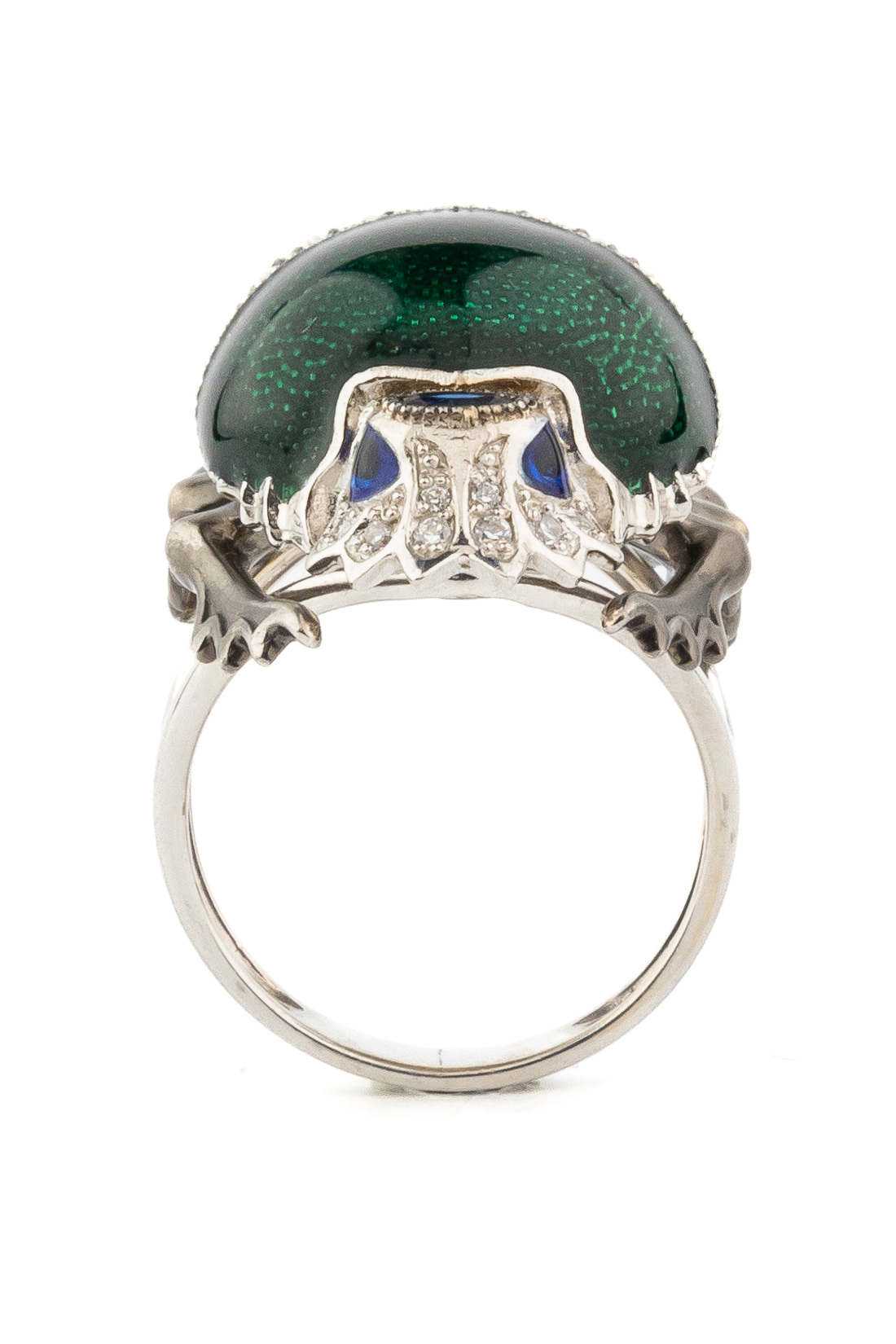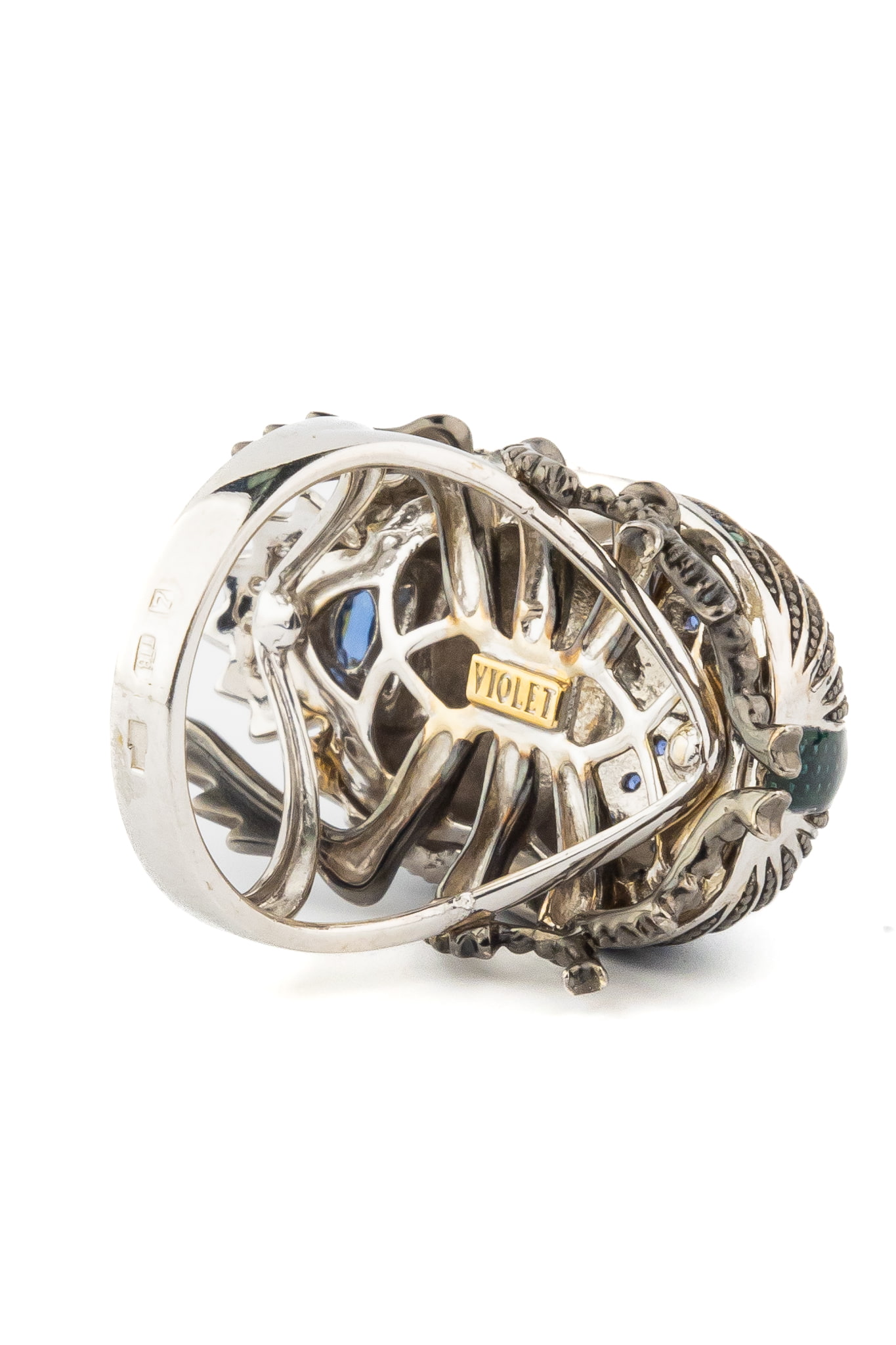 Кольцо из белого золота c эмаль, фианитом и сапфиром