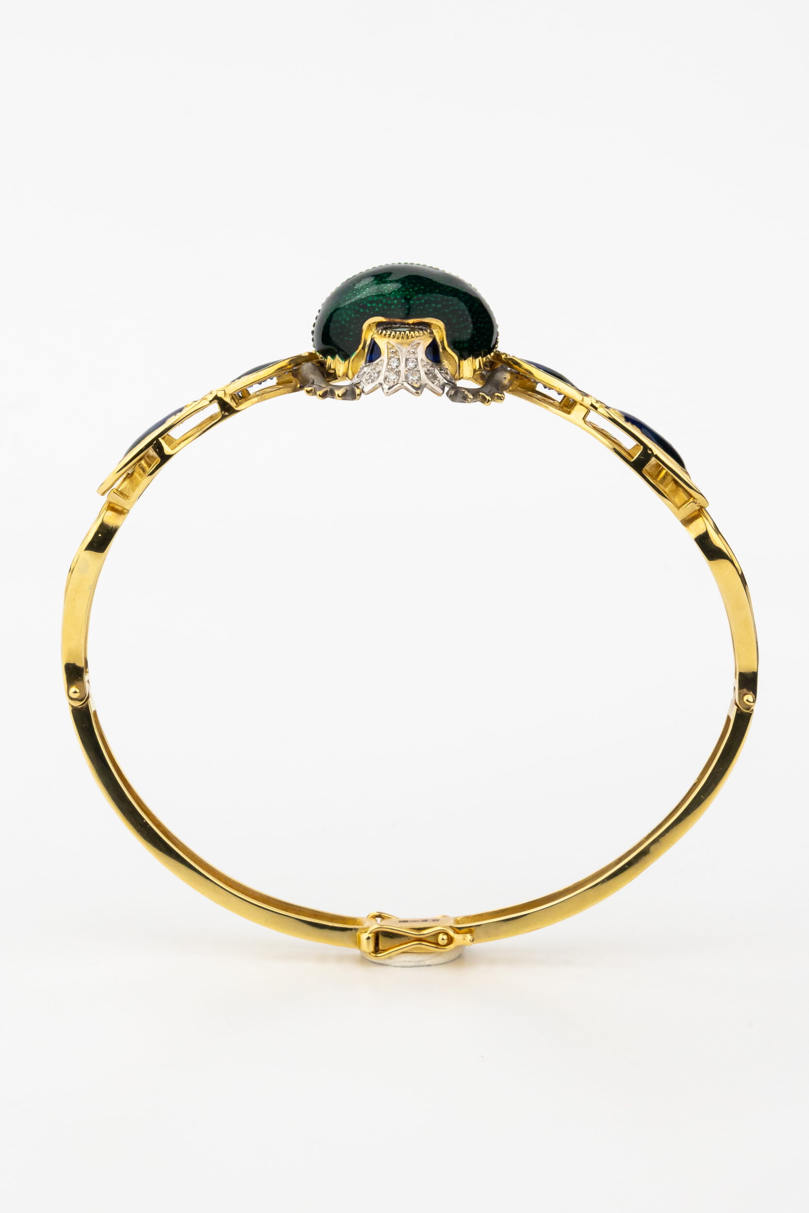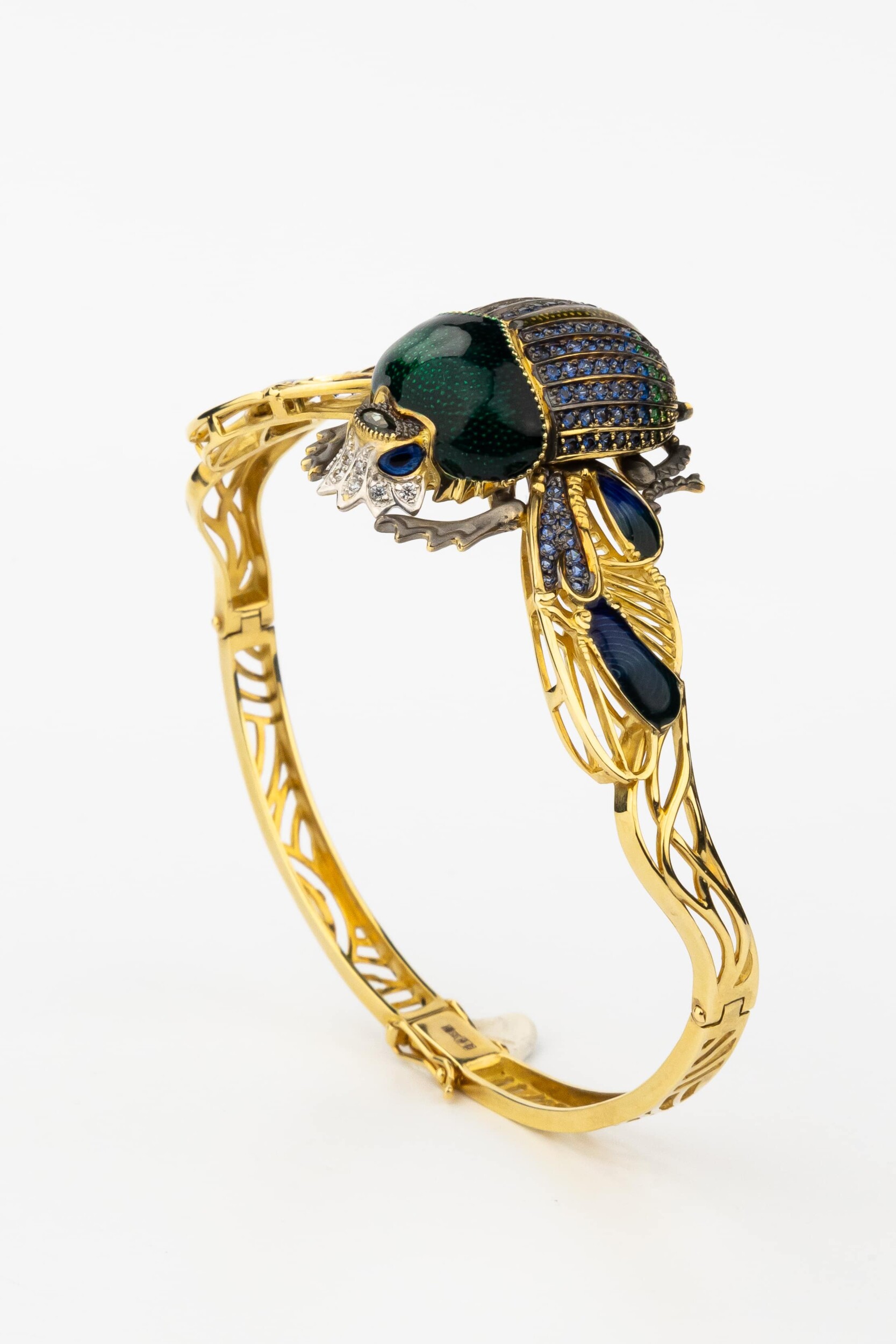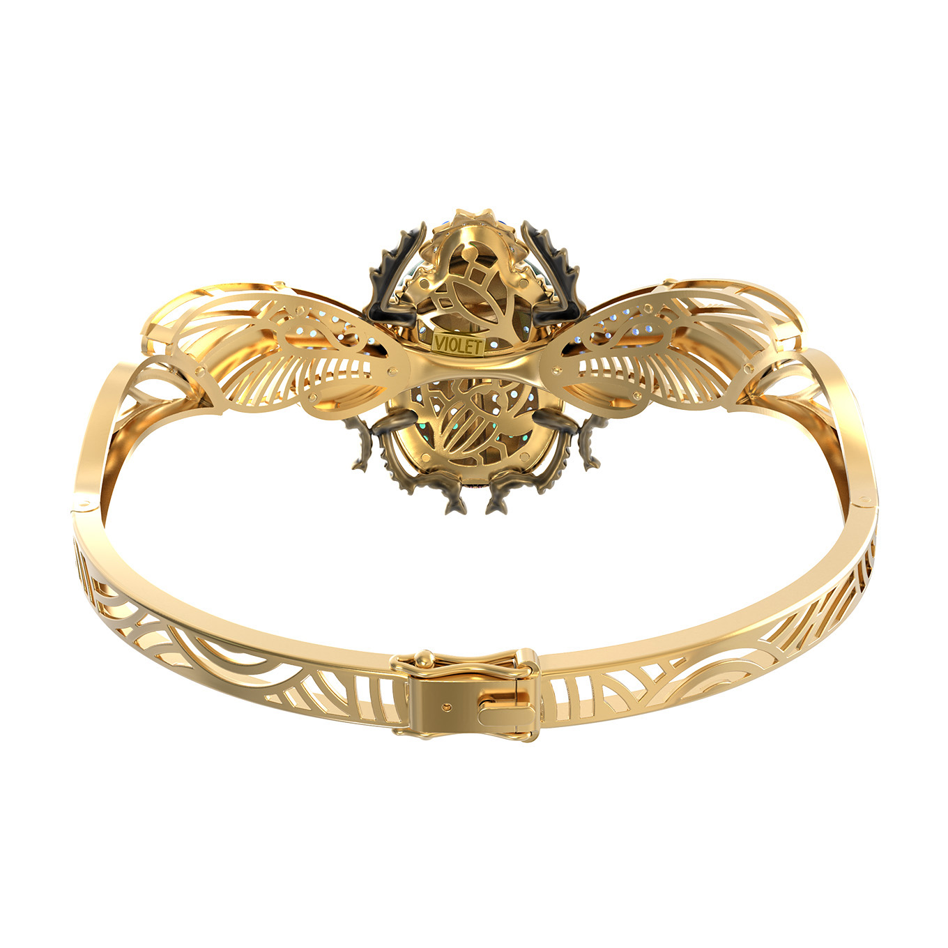 Браслет из лимонного золота c эмаль, фианитом, турмалином и эмалью