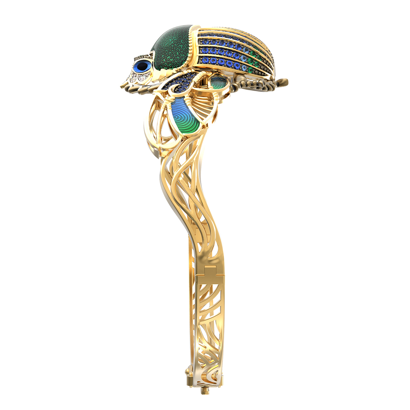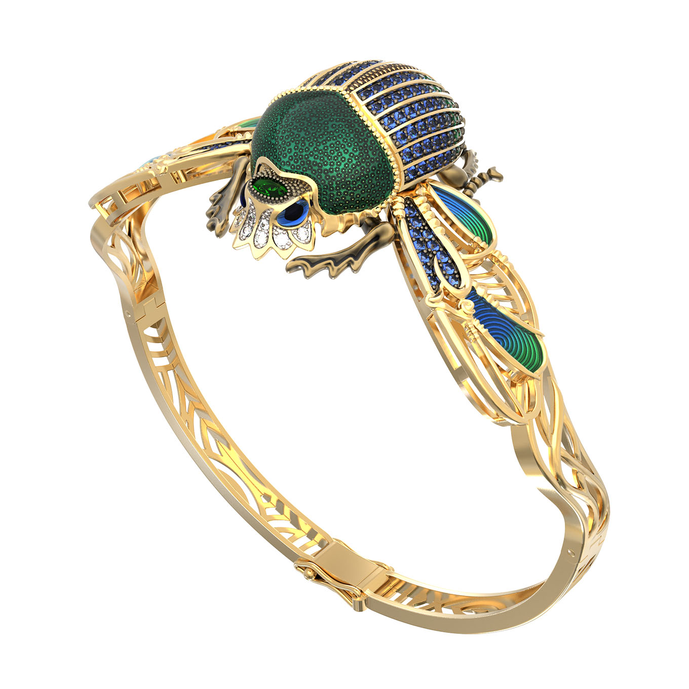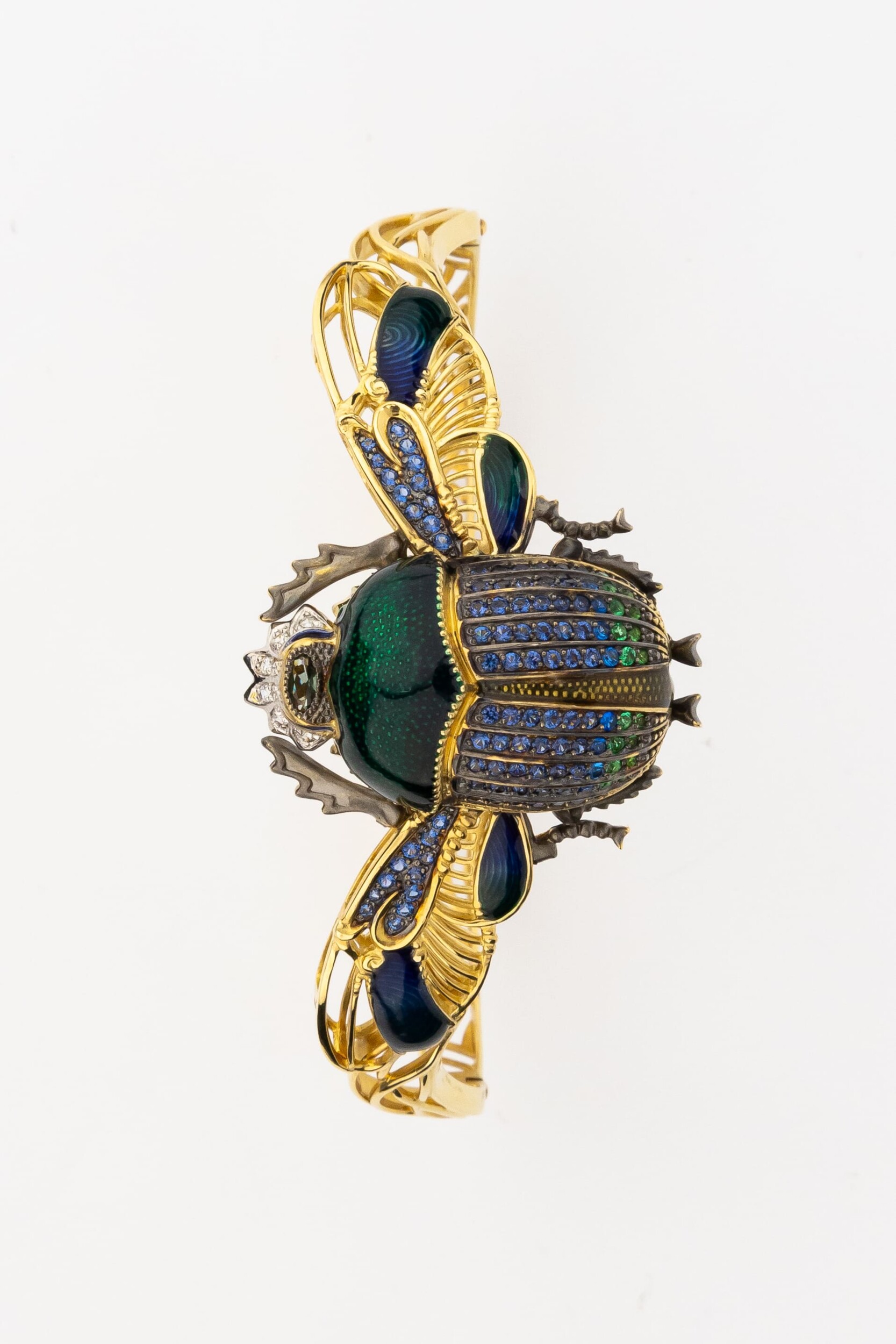 Браслет из лимонного золота c эмаль, фианитом, турмалином и эмалью