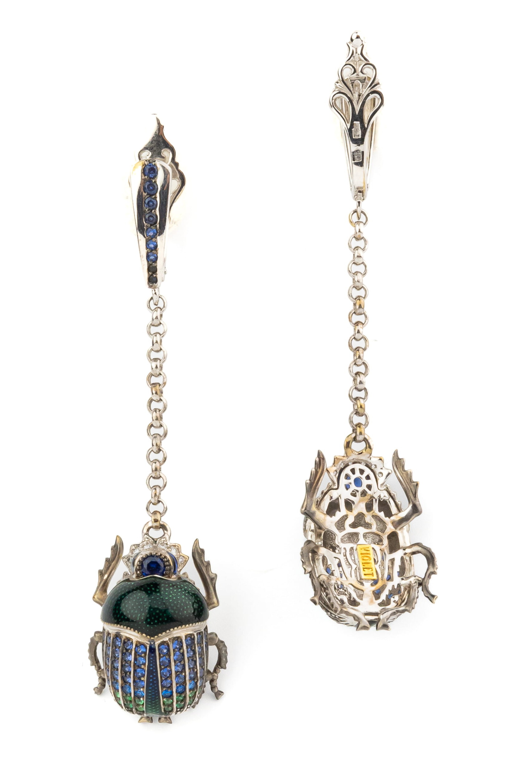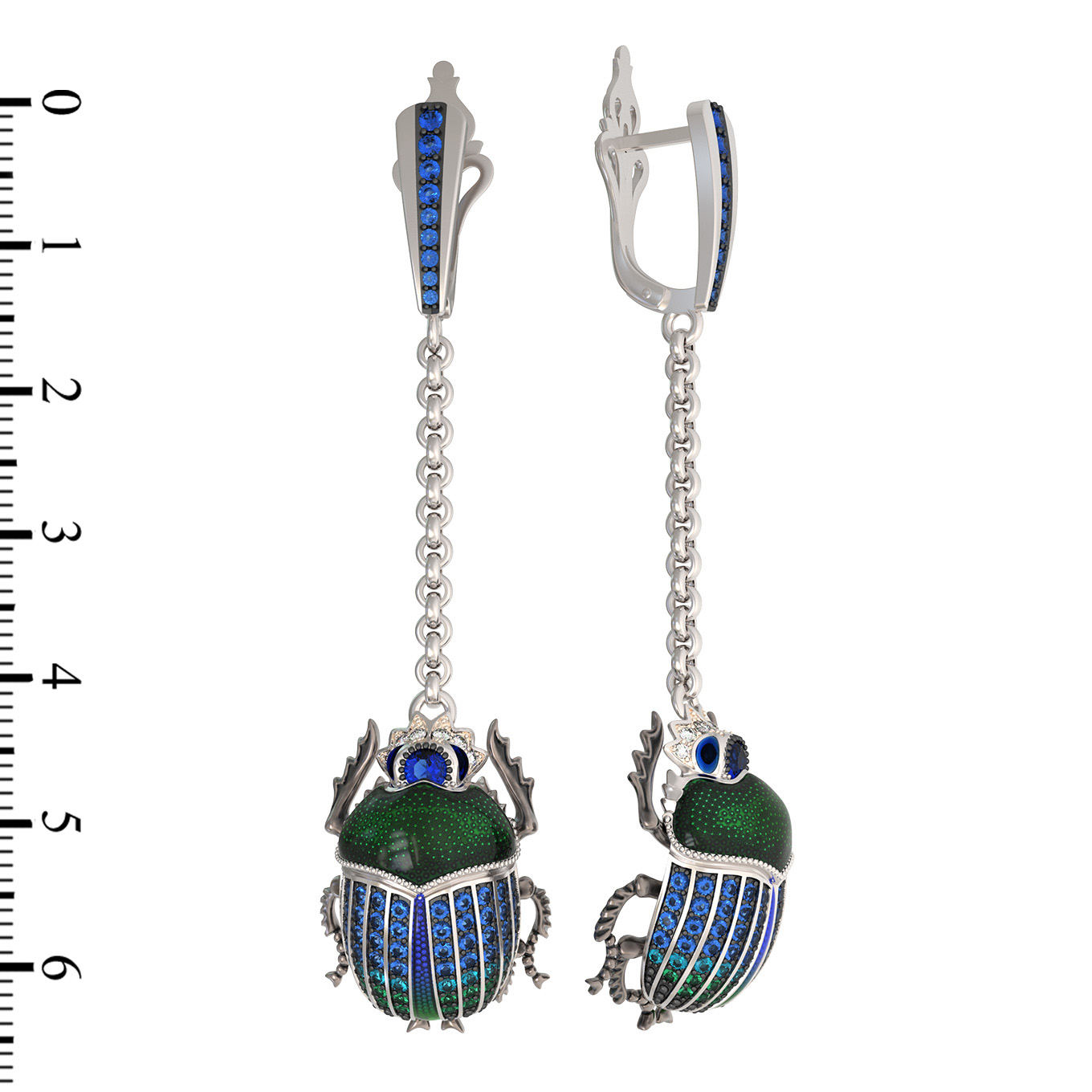 Серьги из белого золота c эмаль, фианитом и сапфиром