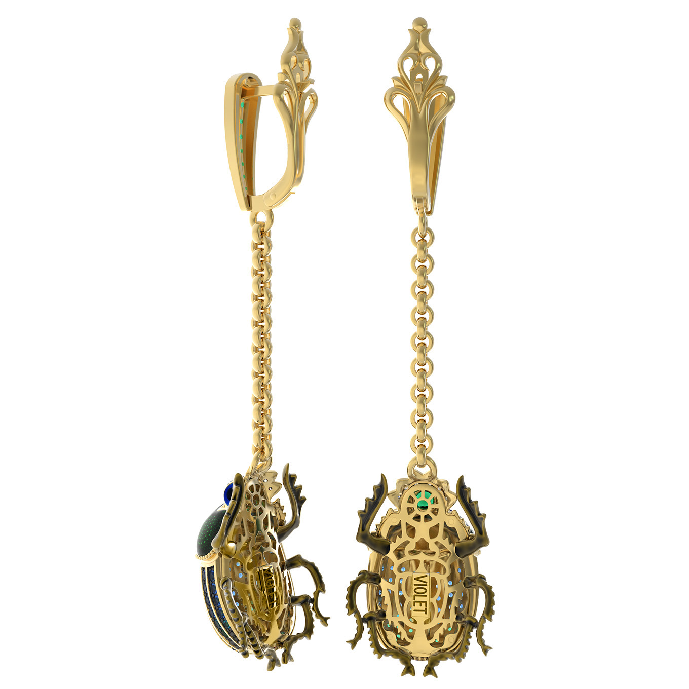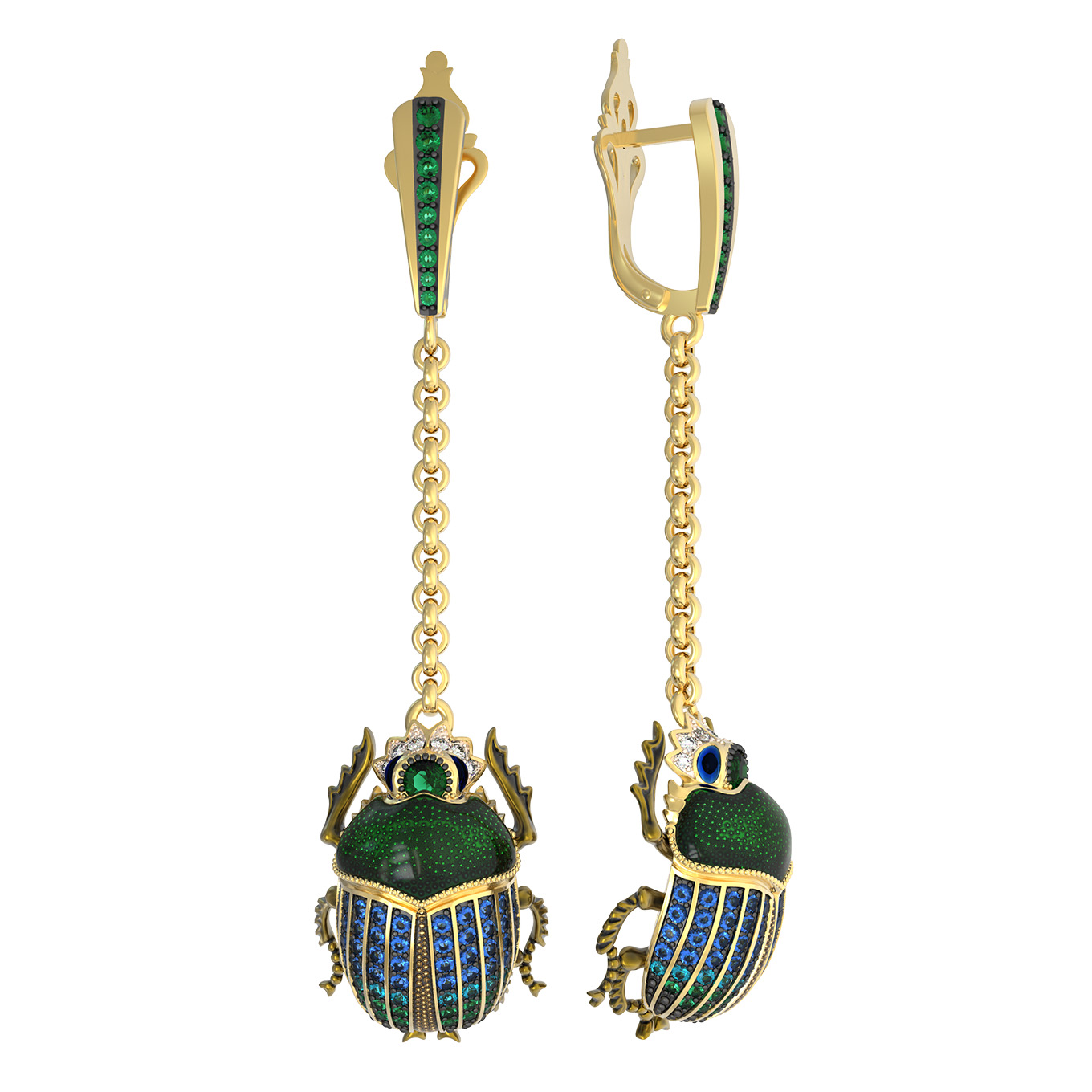 Серьги из лимонного золота c эмаль, фианитом, турмалином и сапфиром