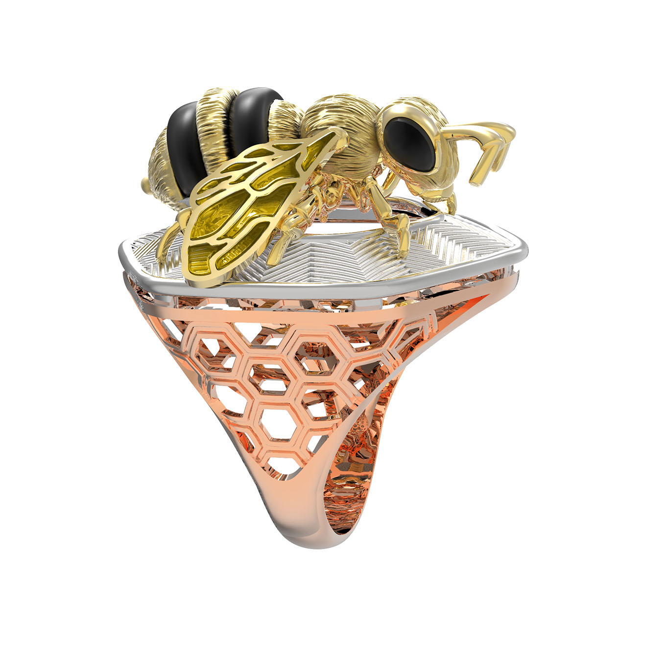 Кольцо из золота c эмаль, ониксом и эмалью