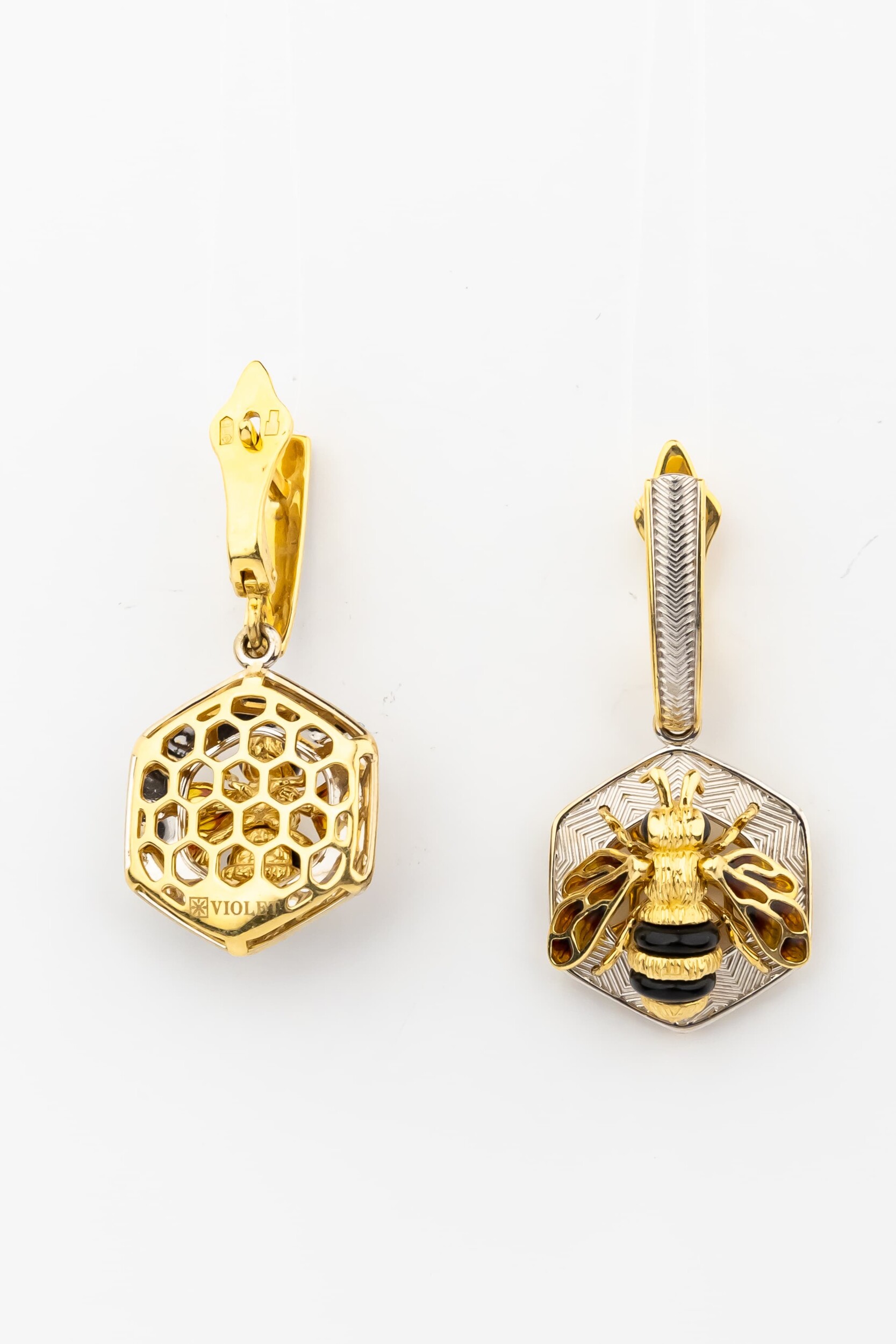 Серьги из лимонного золота c эмаль, ониксом и эмалью