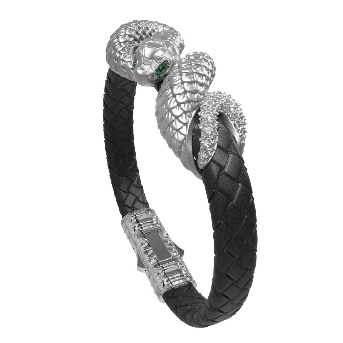Браслет из белого золота c бриллиантами, изумрудом и шнурком