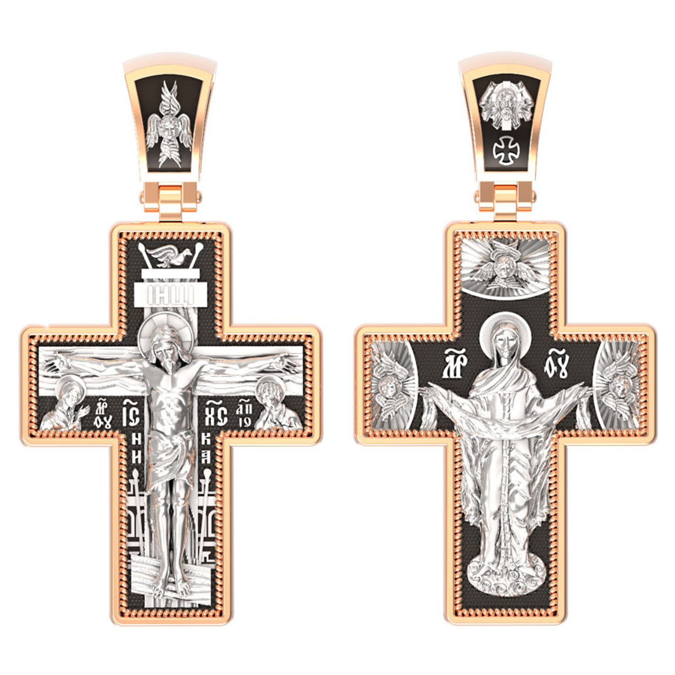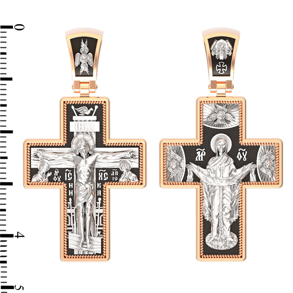 На обороте креста, в окружении крылатых Серафимов, изображена икона Покрова Пресвятой Богородицы. Праздник Покрова Божией Матери является воспоминанием чуда, которое произошло во Влахнернской церкви 1 (14) октября 910 года: Пресвятая Богородица явилась верующим над алтарем храма и распростерла над ними Свое покрывало. В этот день Божья Матерь открыла людям, что Она является Ходатаицей за них перед Богом. Богородица простирает Свой молитвенный покров над всеми православными христианами и умоляет Сына Своего о даровании вечного спасения каждому человеку.