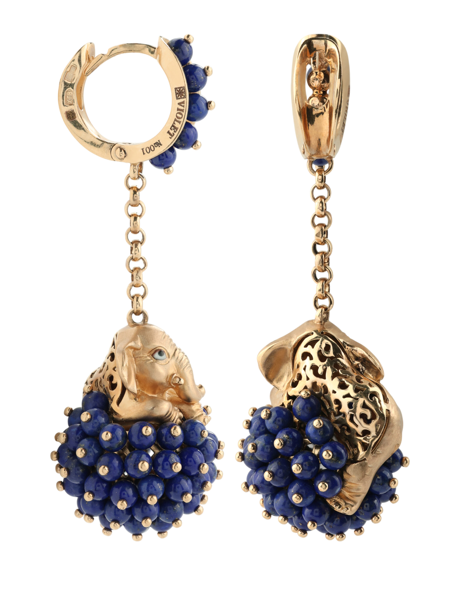 Серьги из золота c эмаль и лазуритом