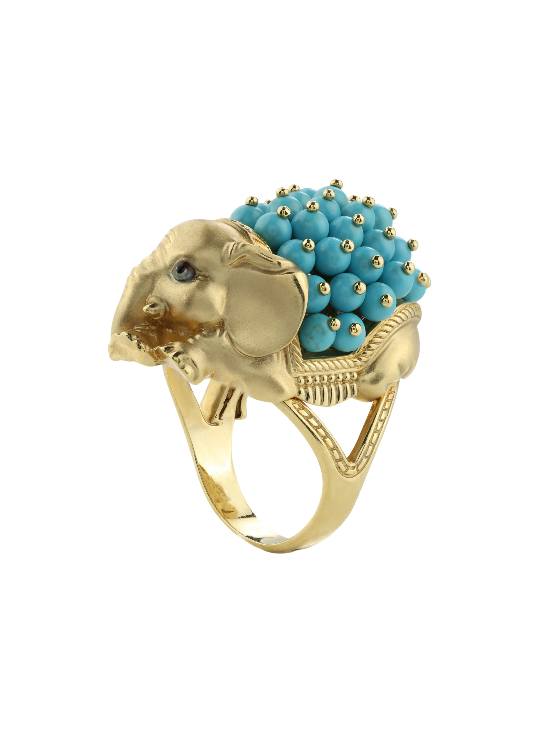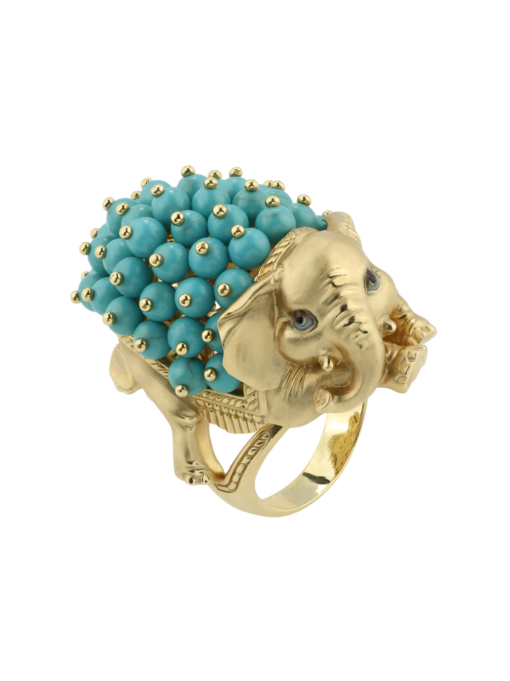 Кольцо из лимонного золота c эмаль и бирюзой