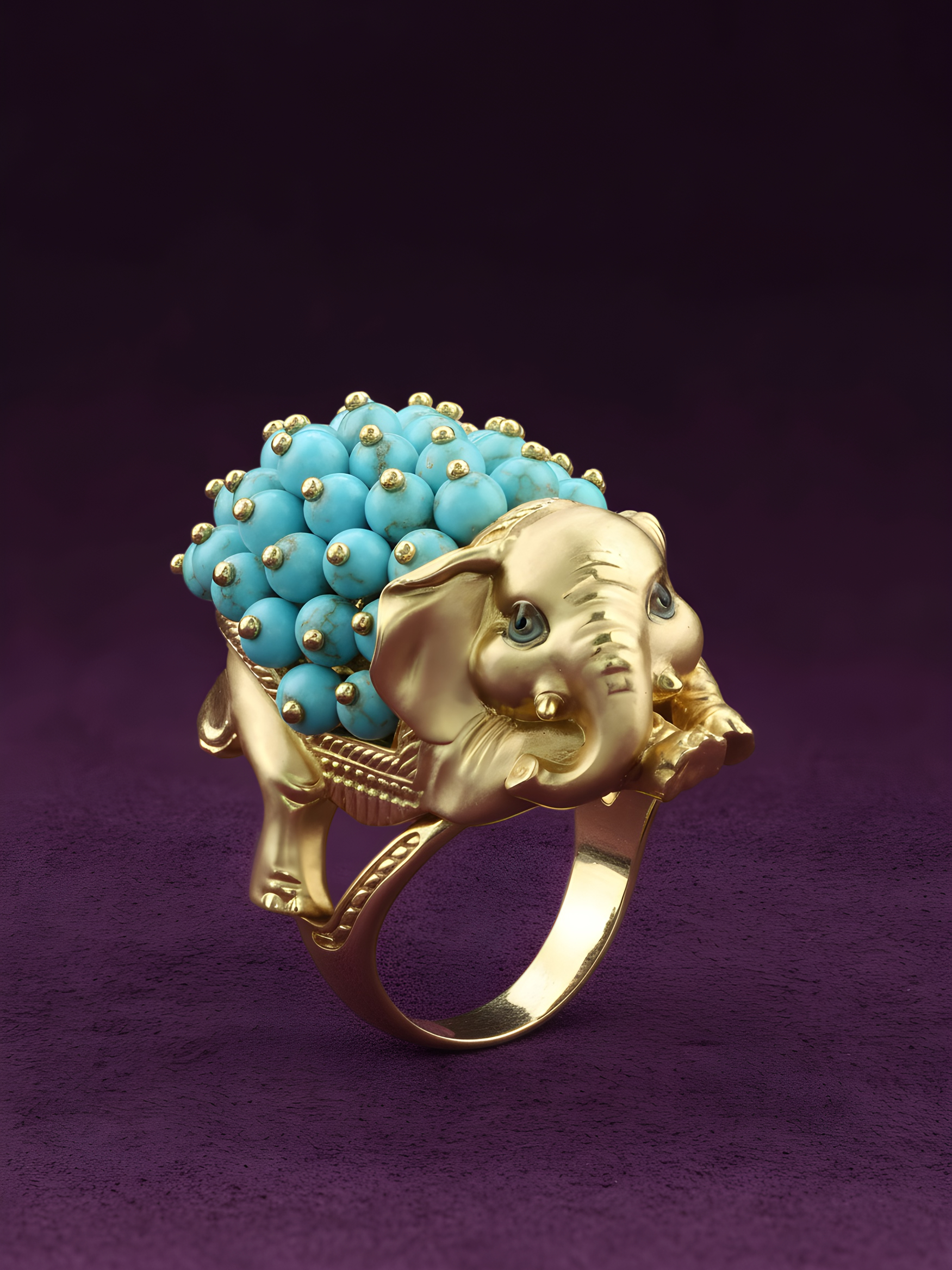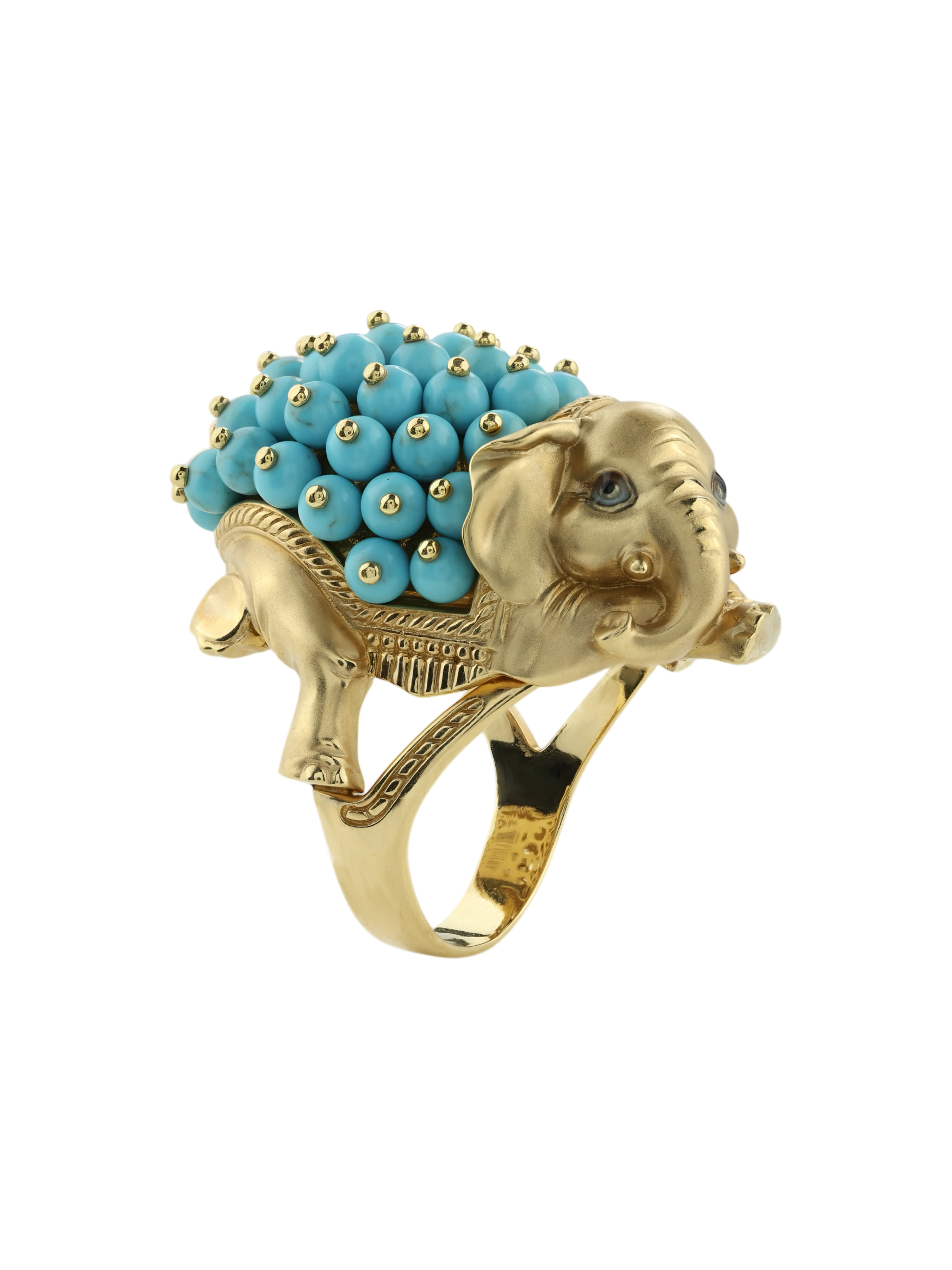 Кольцо из лимонного золота c эмаль и бирюзой