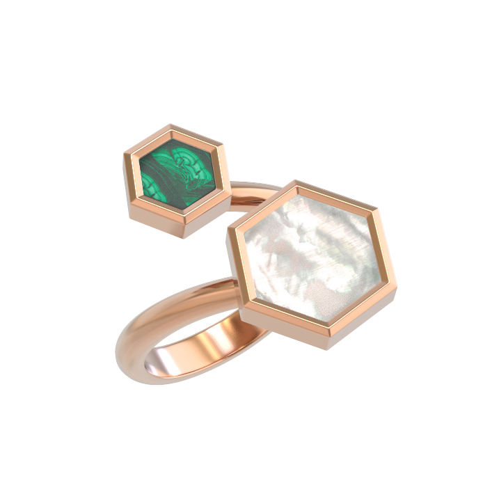 Кольцо из золота c малахитом и перламутром