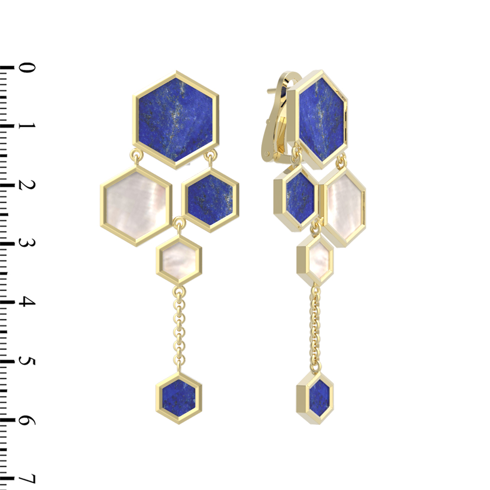 Серьги из лимонного золота c лазуритом и перламутром