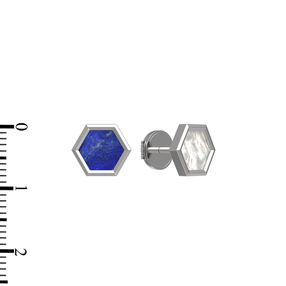 Серьги из белого золота c лазуритом и перламутром