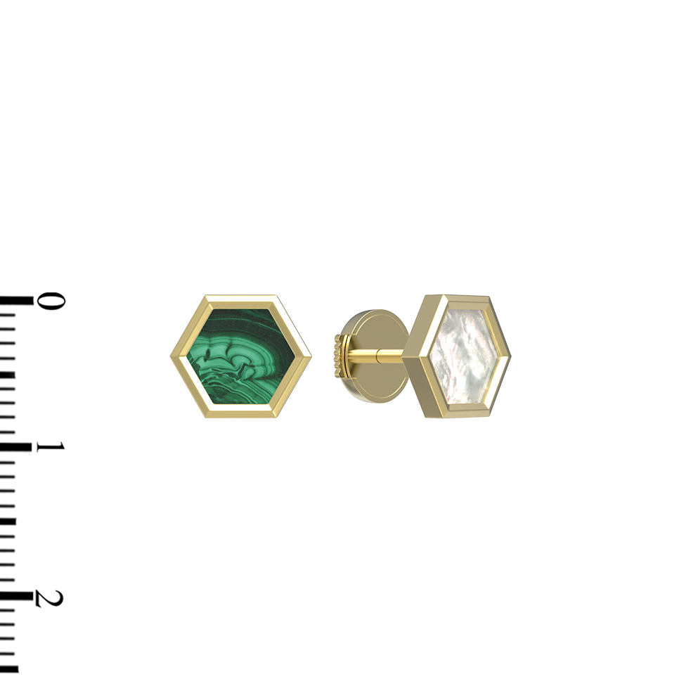 Серьги из лимонного золота c малахитом и перламутром