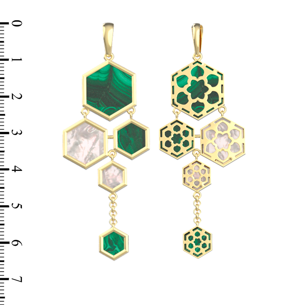 Подвеска из лимонного золота c малахитом и перламутром