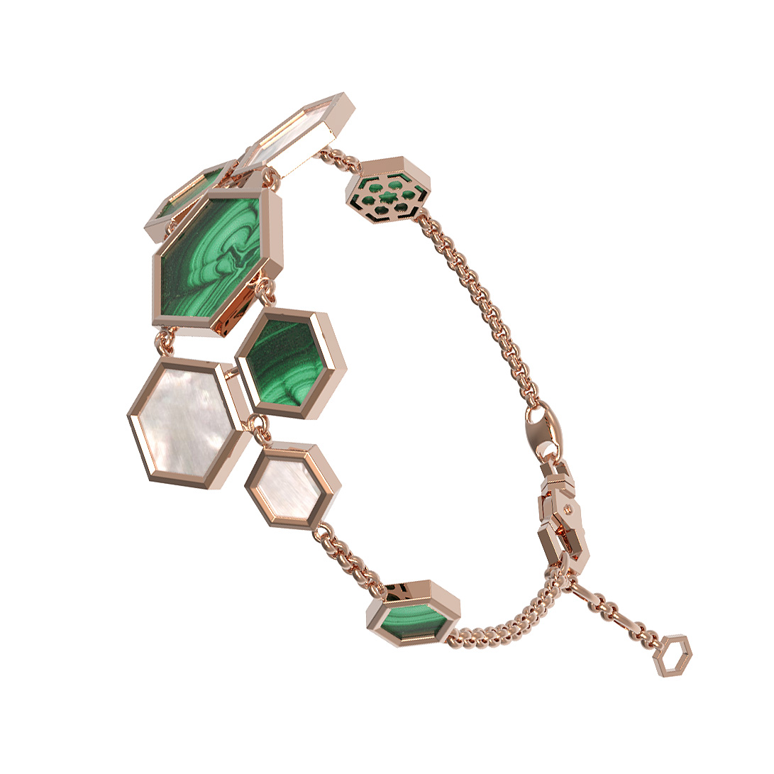 Браслет из золота c малахитом и перламутром