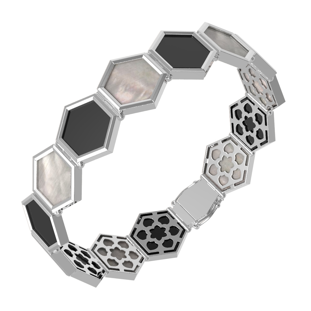 Браслет из белого золота c ониксом и перламутром