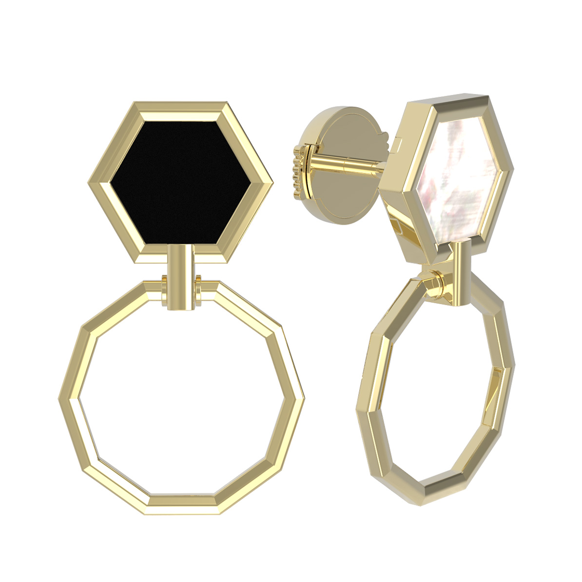 Серьги из лимонного золота c ониксом и перламутром