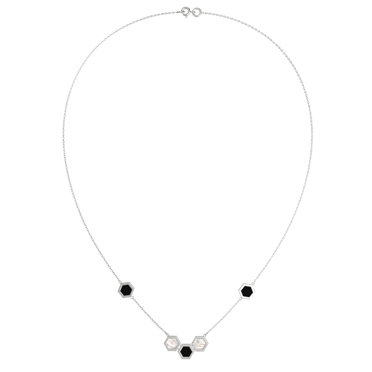 Колье из белого золота c ониксом и перламутром