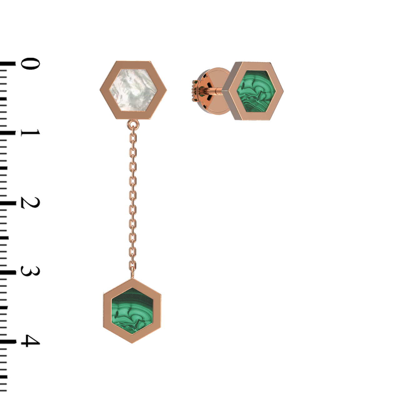 Серьги из золота c малахитом и перламутром